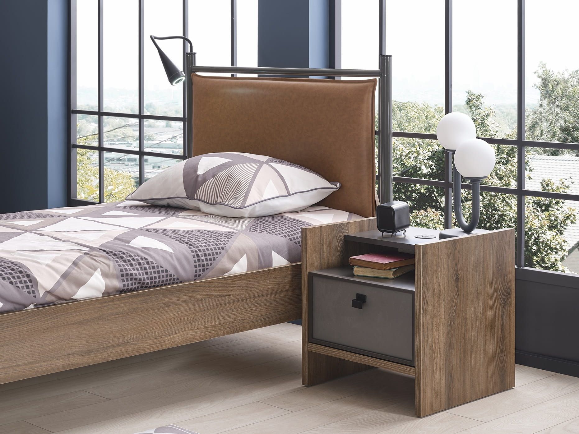 Einzelbett Craft in Anthrazit/Holzoptik