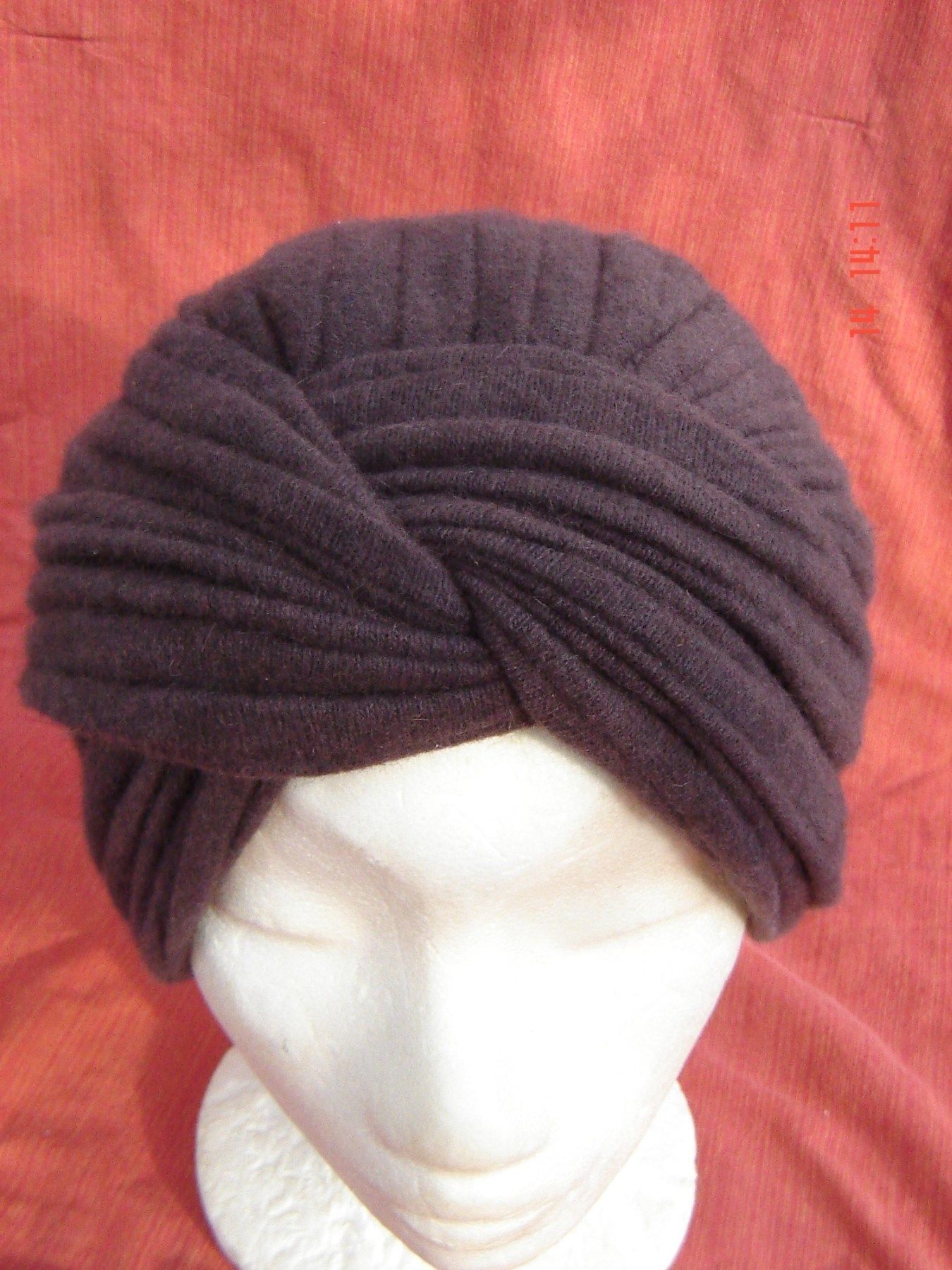 Einzelstück schöner Turban Wollstrick braun rotbraun Strickturban p ZB1