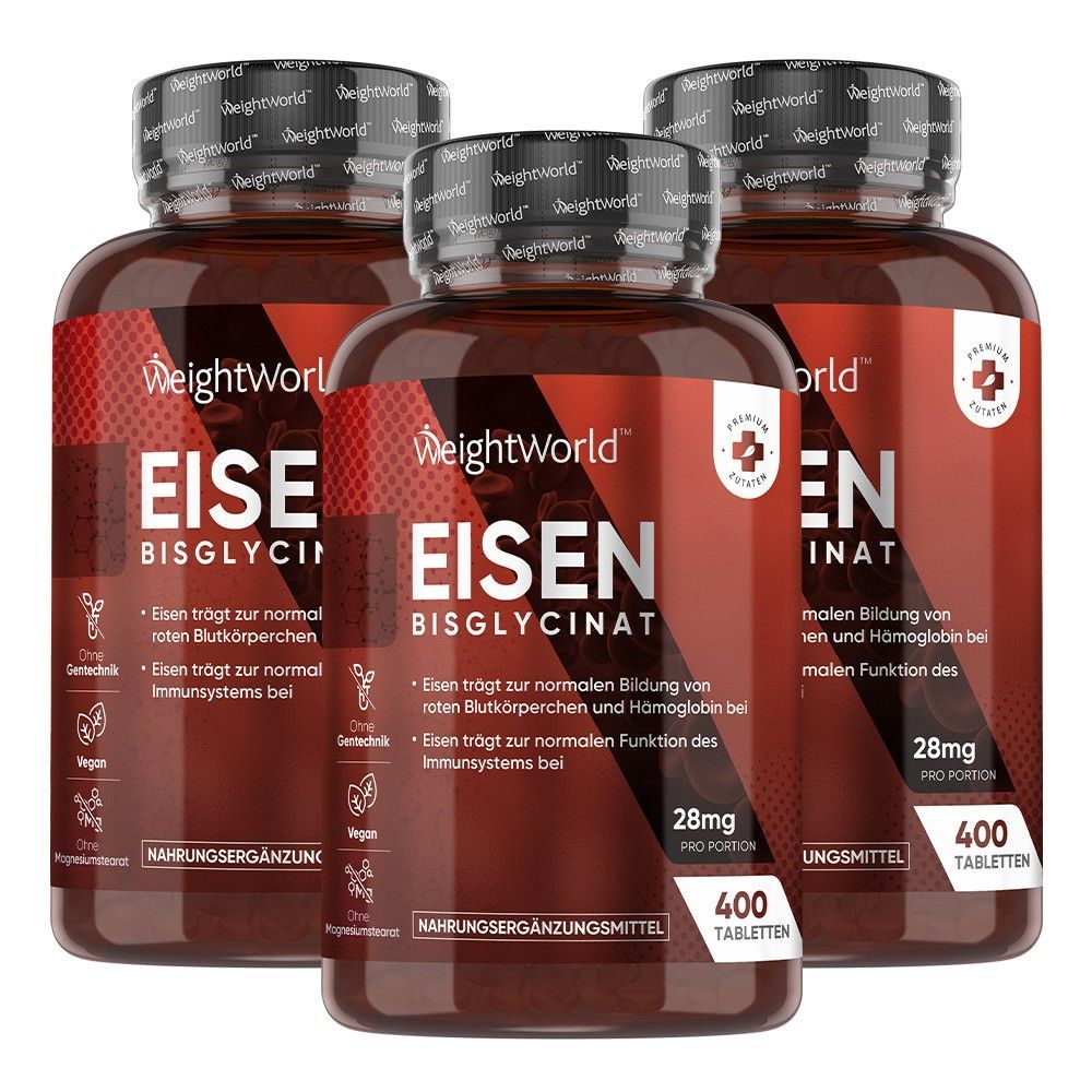 Eisen + Vitamin C - 3er-Pack, 1200 Tabletten - Optimierte Aufnahme & tägliche Unterst
