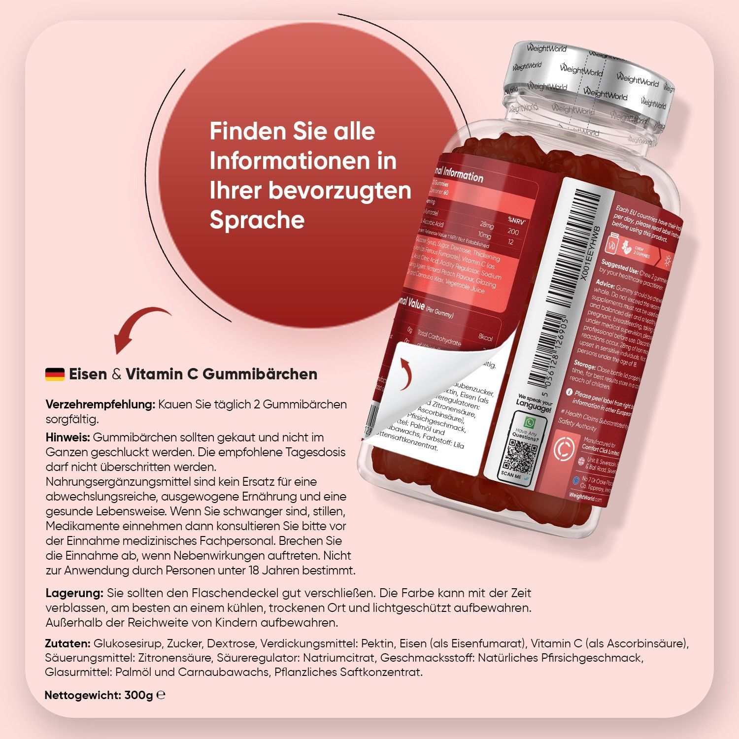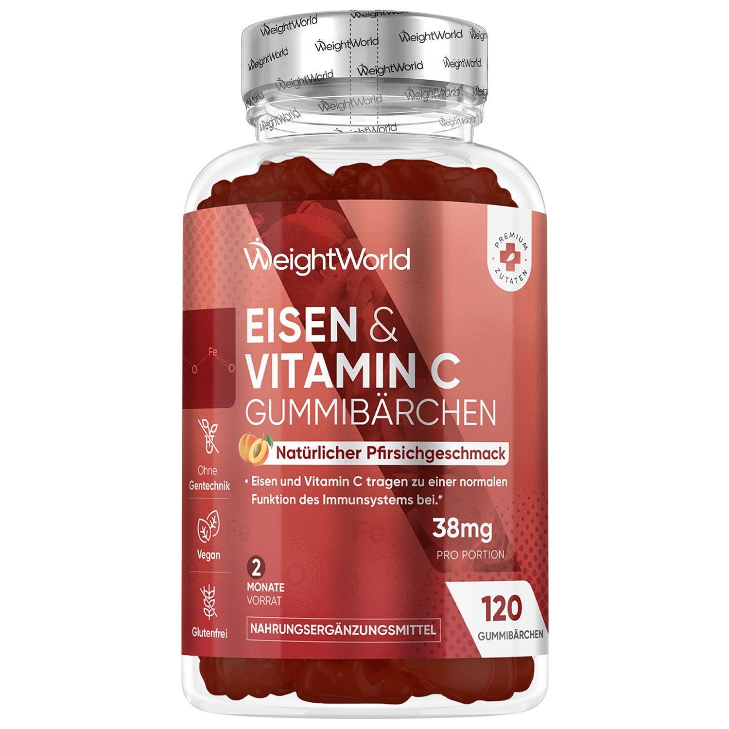 Eisen & Vitamin C Gummibärchen - 120 Iron Gummies - 3 Flaschen - WeightWorld