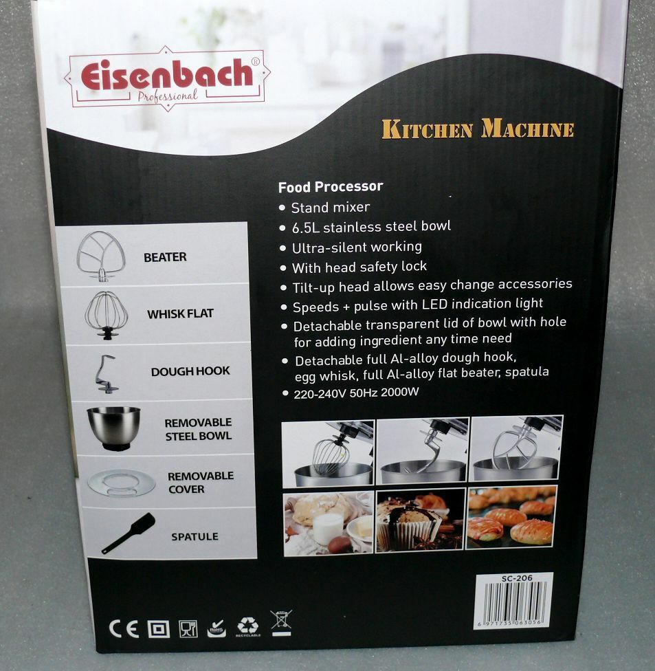 Eisenbach SC206 Küchenmaschine Rührmaschine Knetmaschine Teigkneter 2000W 4,5 L