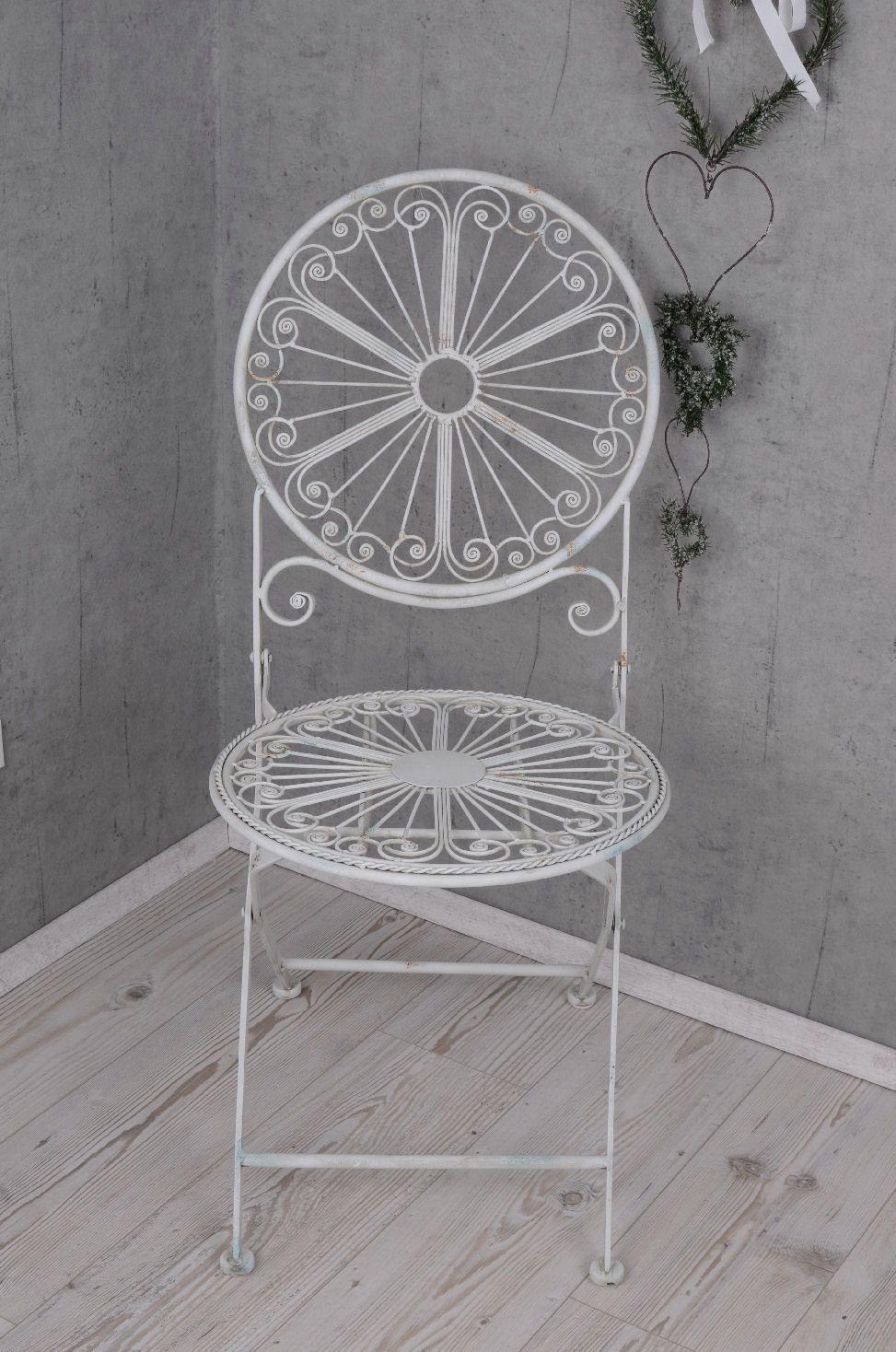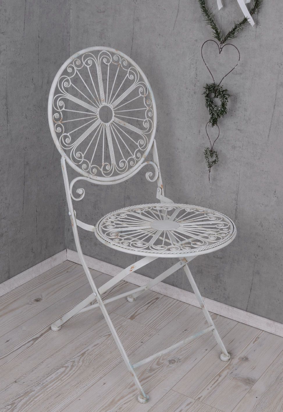 Eisenstuhl Shabby Chic Garten Klappstuhl Stuhl weiß Metall Gartenstuhl