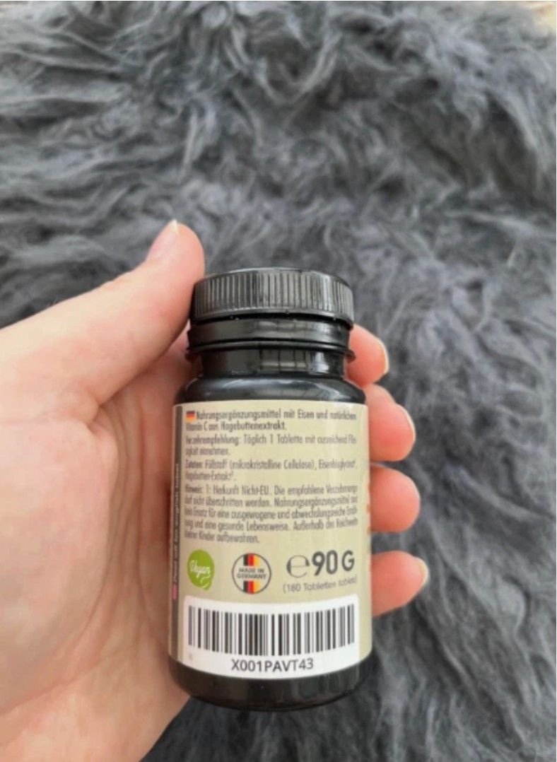 Eisentabletten hochdosiert 180x mit 40 mg Eisen + Vitamin C (40mg) aus Hagebutten - Eisentabletten VEGAN mit bioverfügbarem Eisen, hochdosiert aus Eisenbisglycinat - laborgeprüft mit Zertifikat