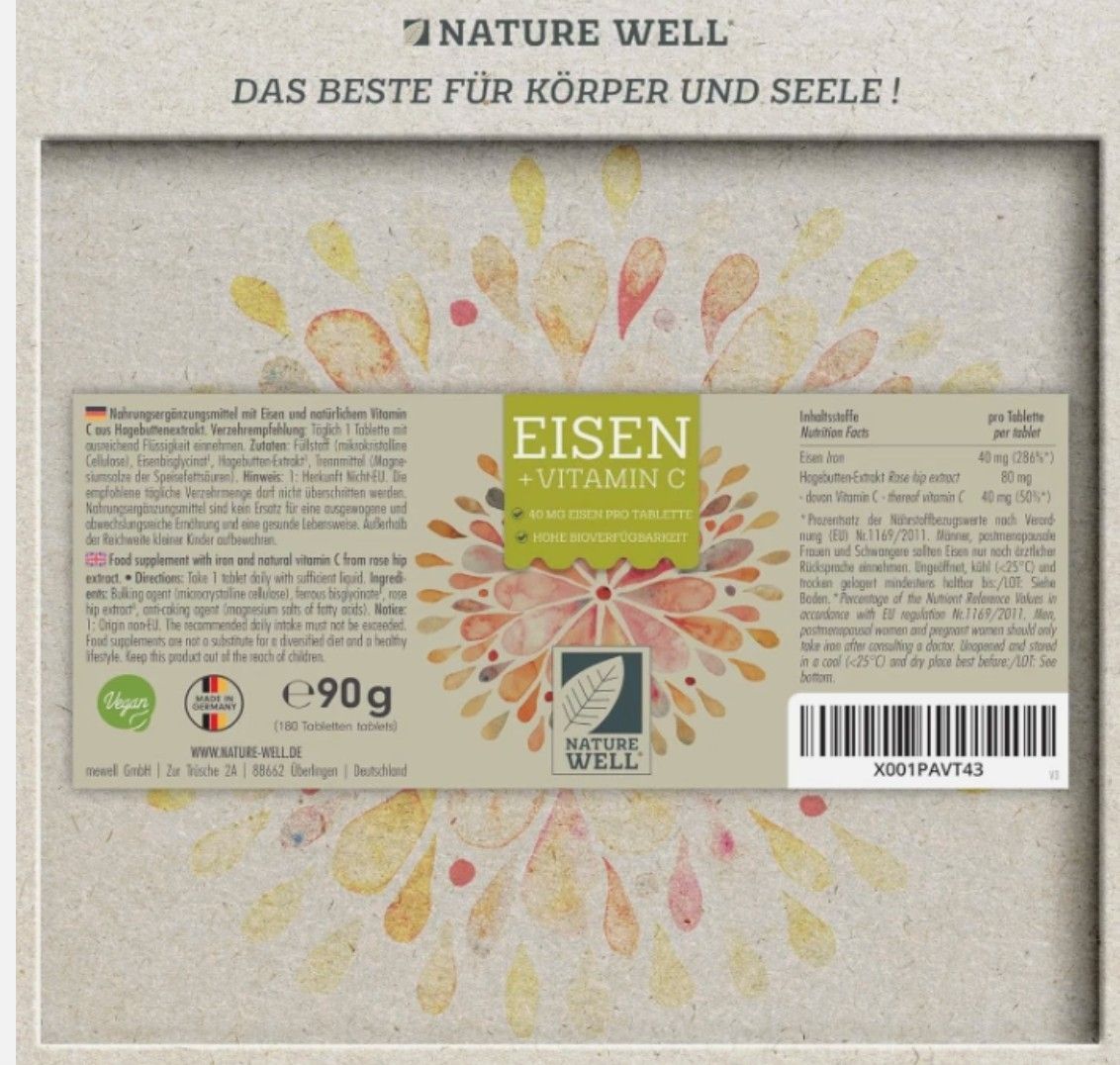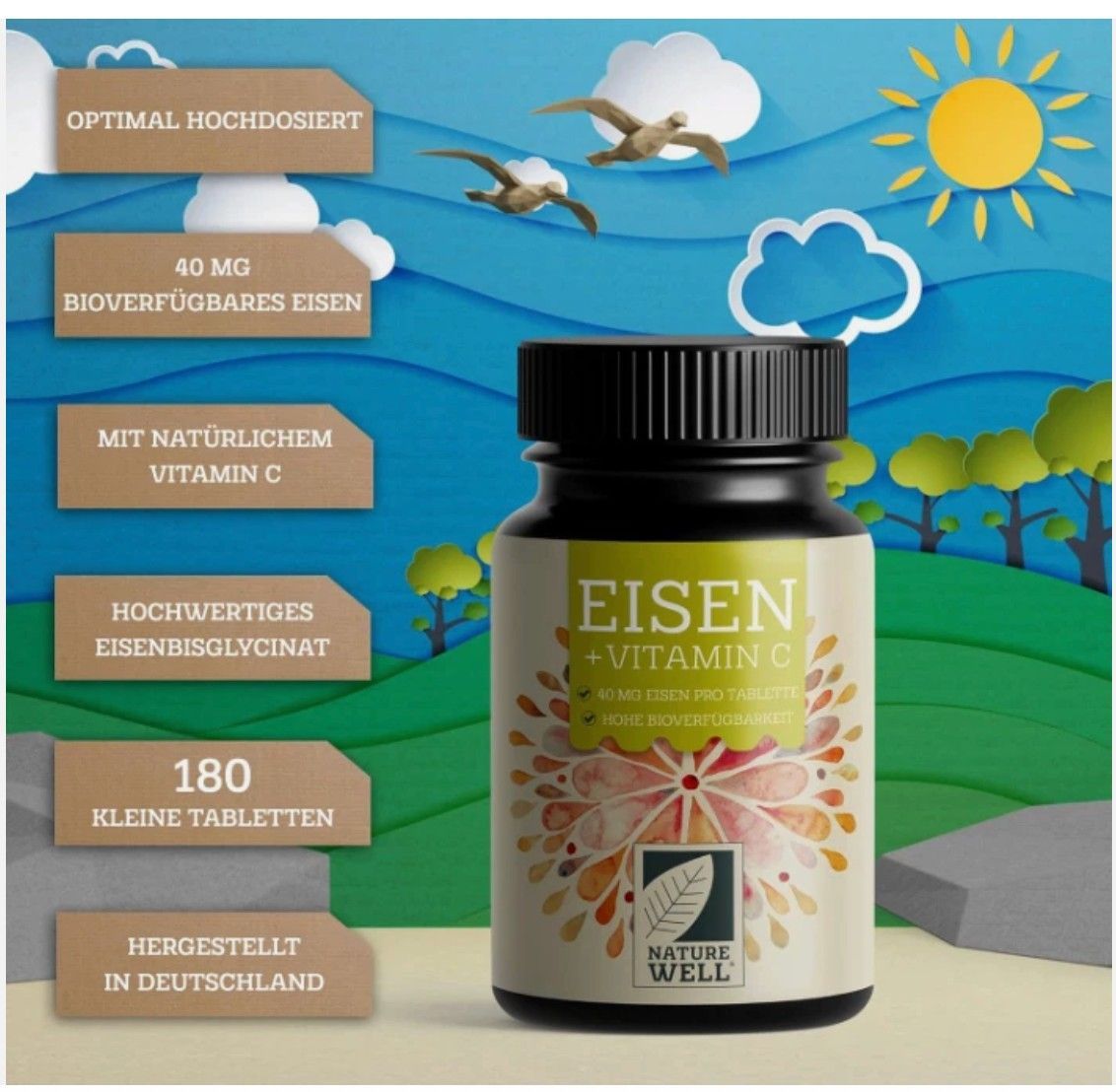 Eisentabletten hochdosiert 40mg + Vitamin C-180 vegane Tabletten-Eisenbisglycinat