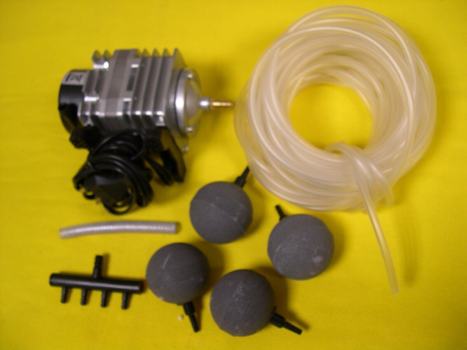 orig. verpackte NEUWARE - mit Rechnung und gesetzlicher Gewährleistung Profi Eisfreihalter-Set bzw. Teichbelüfter-Set (8-teilig) (siehe Foto) Qualitätsbelüfter der renommierten Firma Resun ( keine Billigware ) bestehend aus : 1. K olbenkompressor mit einer Luftftleistung von 150 0 Liter Stunde . Air