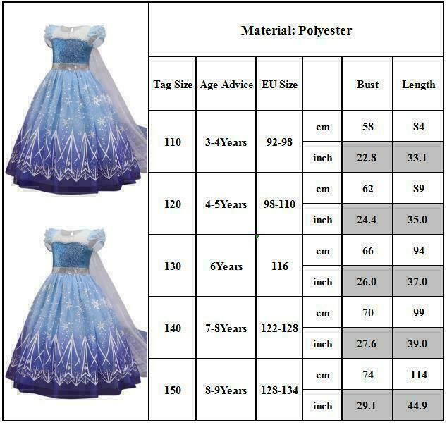 Eiskonigin Frozen Elsa Prinzessin Kleid Kinder Madchen Partykleid Cosplay Kostum