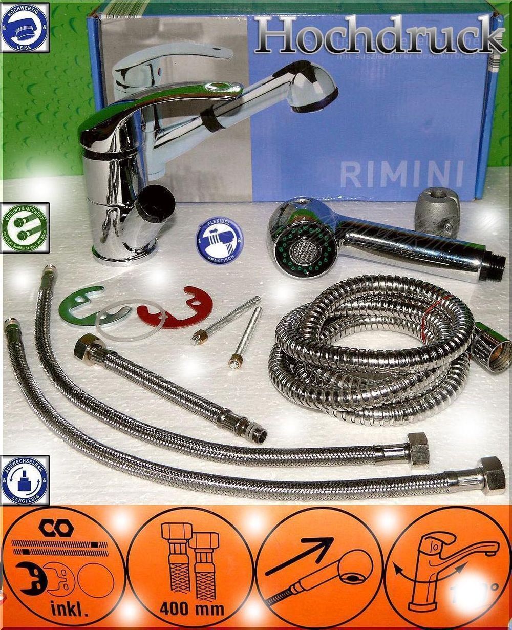 EISL RIMINI Blue Küchen Spültischarmatur ausziehbare Hand Brause Hochdruck 31