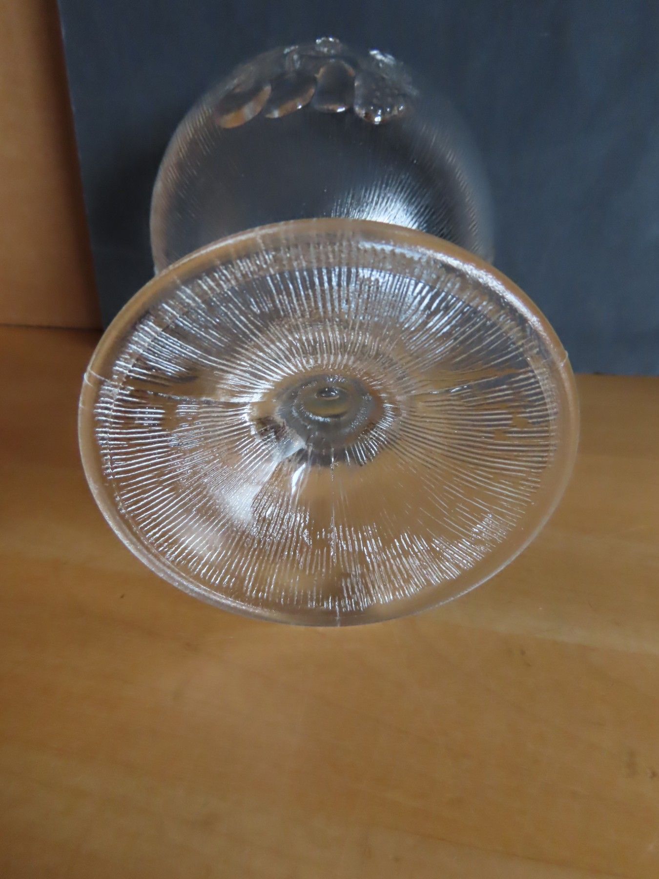 Maße: ca. 14,5 m hoch Öffnung hat einen Durchmesser von ca. 10,8 cm der Fuß ist ca. 6,5 cm hoch und hat einen Durchmesser von ca. 7,5 cm Material: Glas ist etwas verschmutzt... Mehr