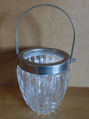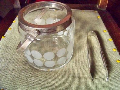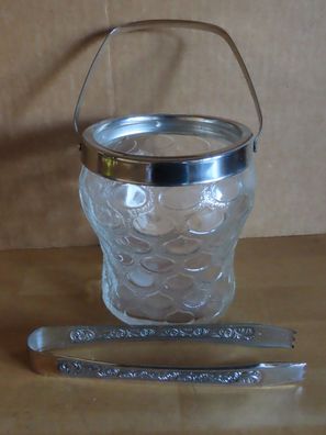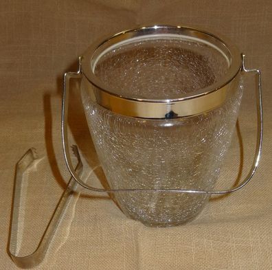 • CT Eiswürfelbehälter Craquele Glas Henkel Rand + passende Eiszange aus Edelstahl Vint