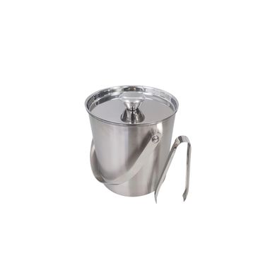 bremermann Eiswürfelbehälter mit Zange, Edelstahl-Eiskübel mit Deckel 1,5l, rund