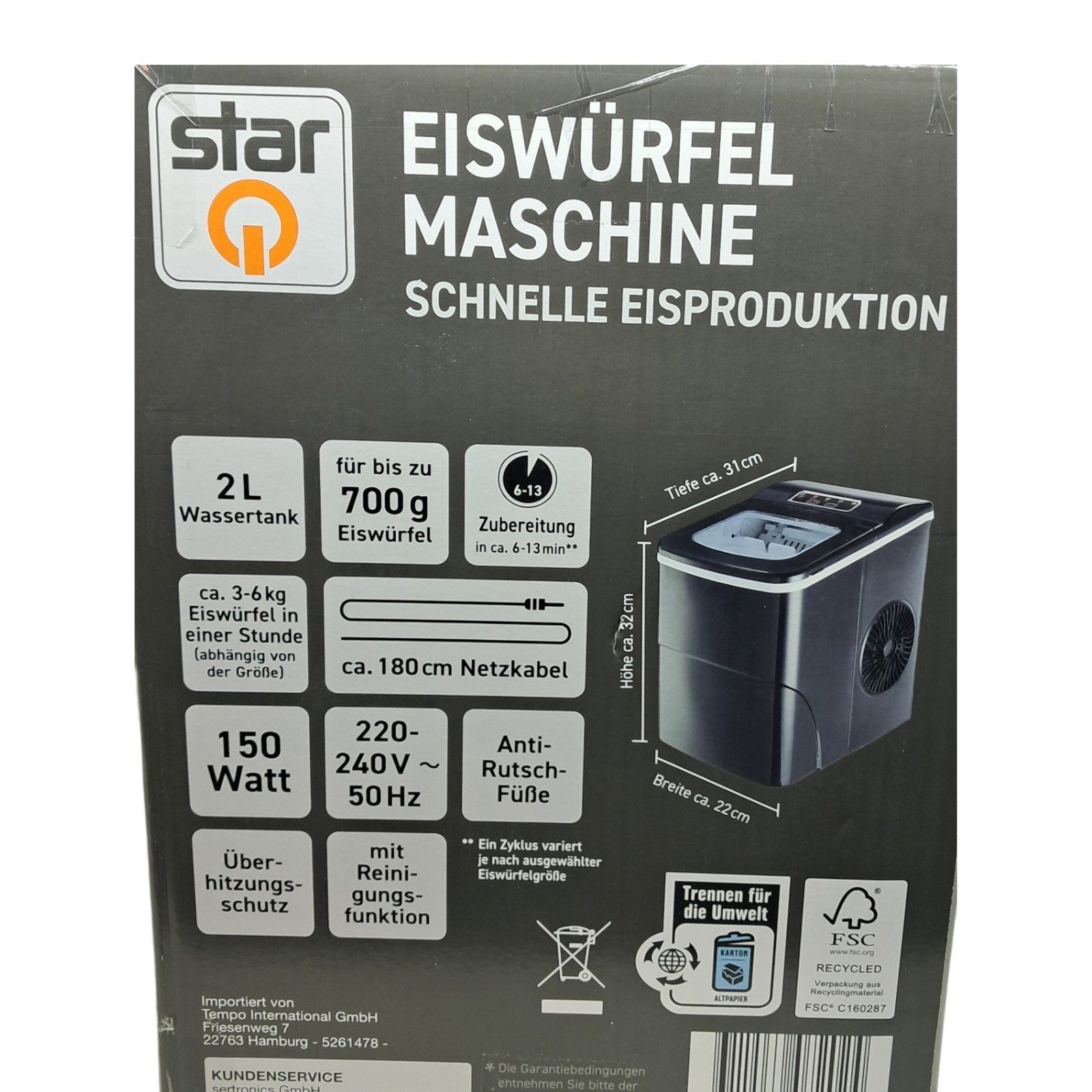 Eiswürfelmaschine 2L schwarz
