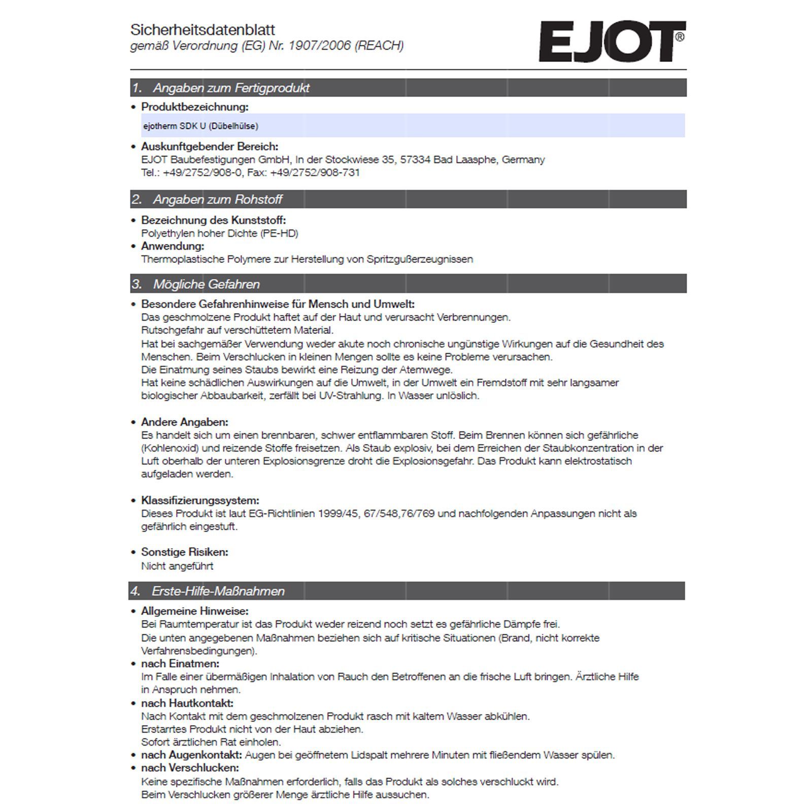 Ejotherm SDK U 100 Stück Fassadenschraubdübel mit Kragenkopf und Stahlschraube