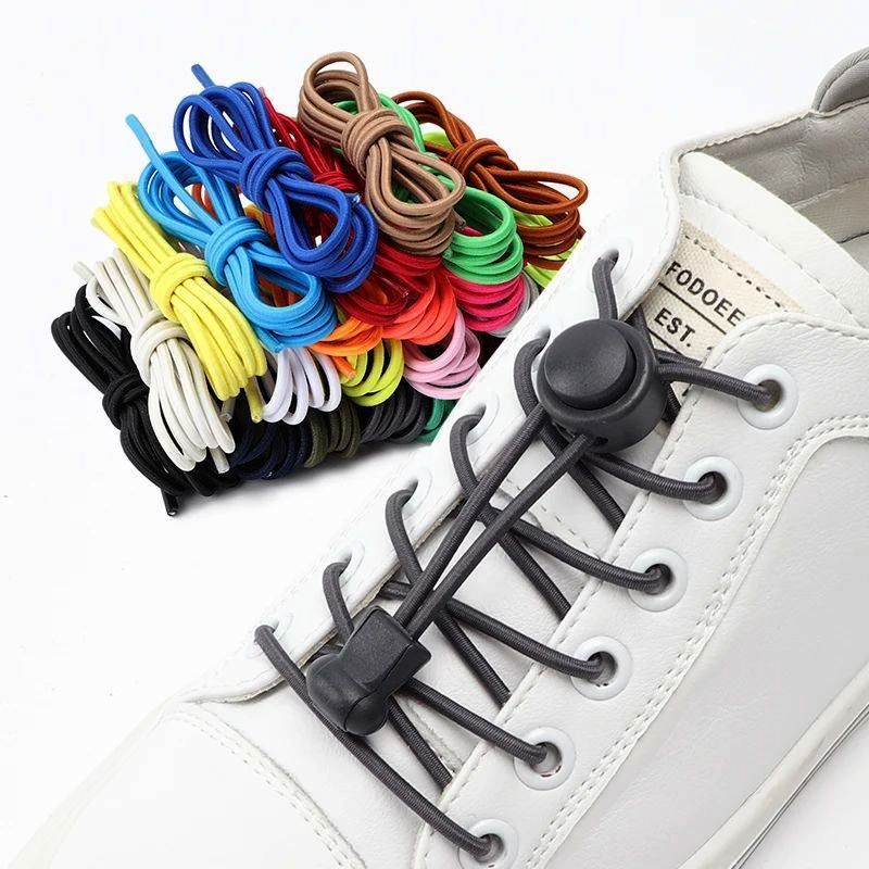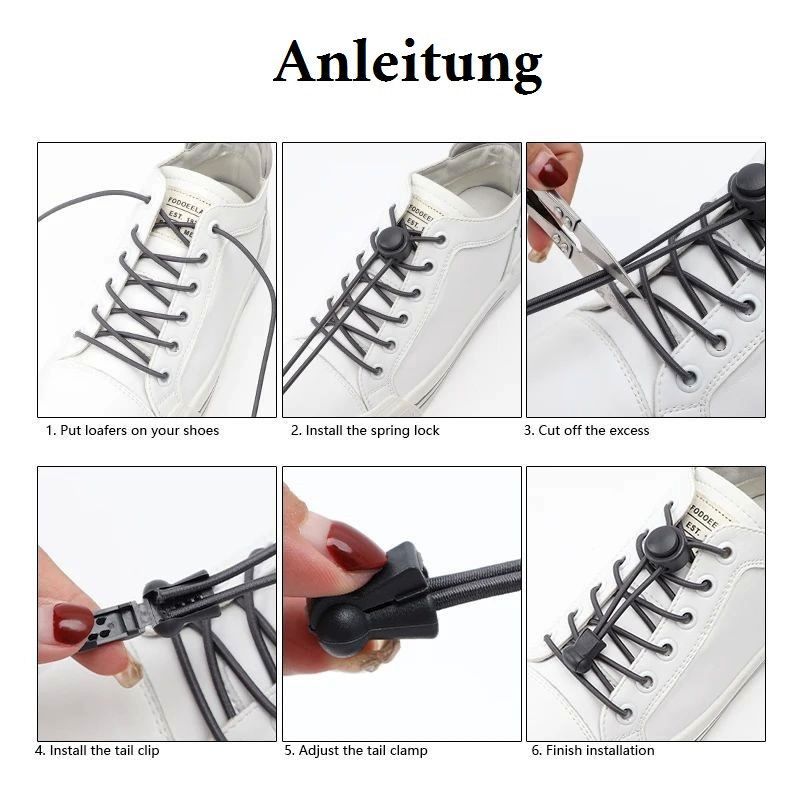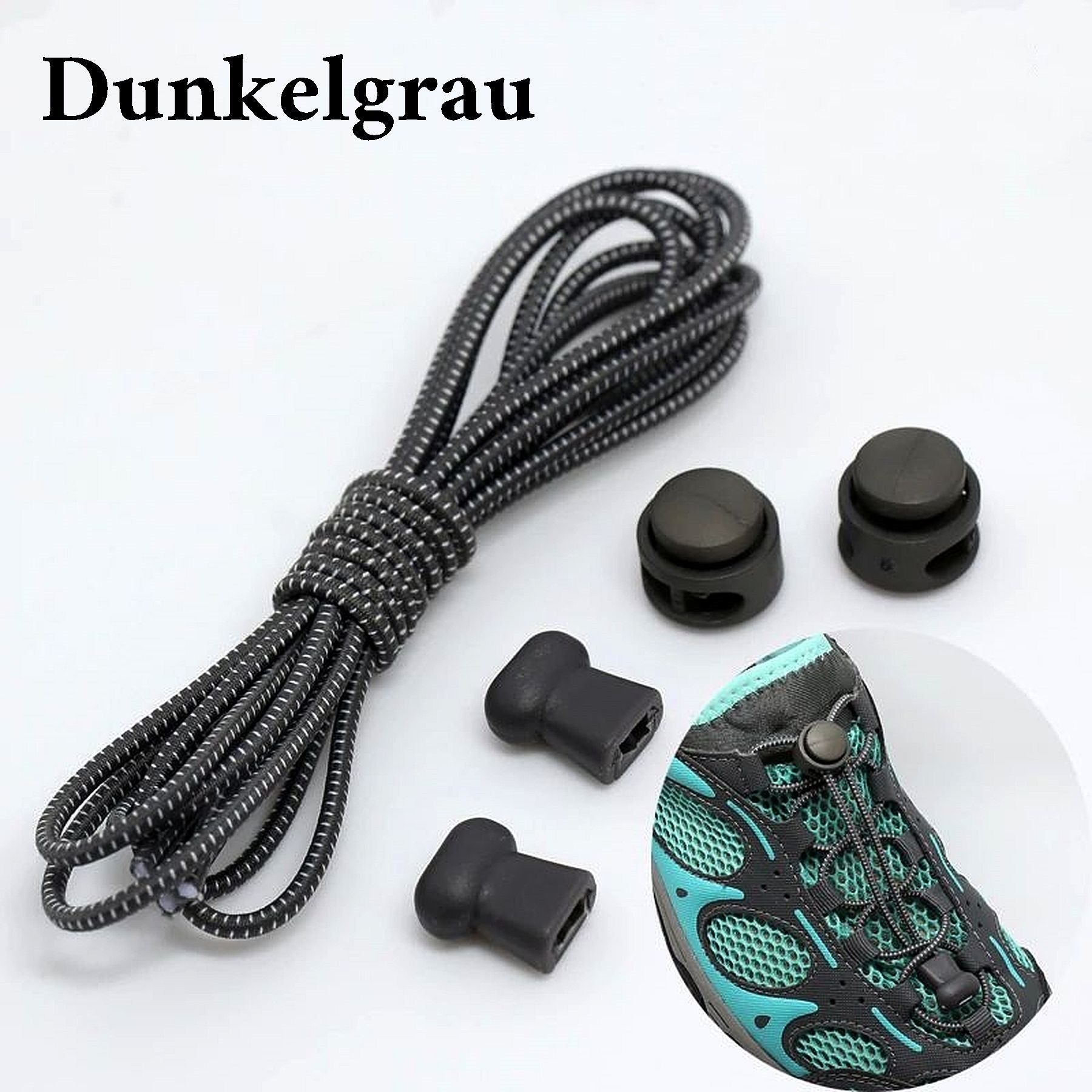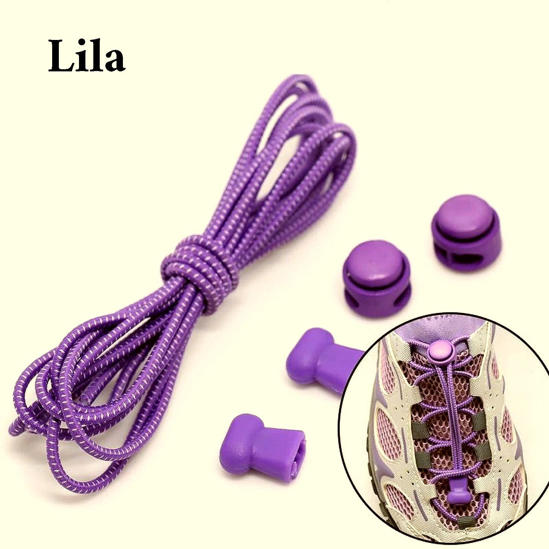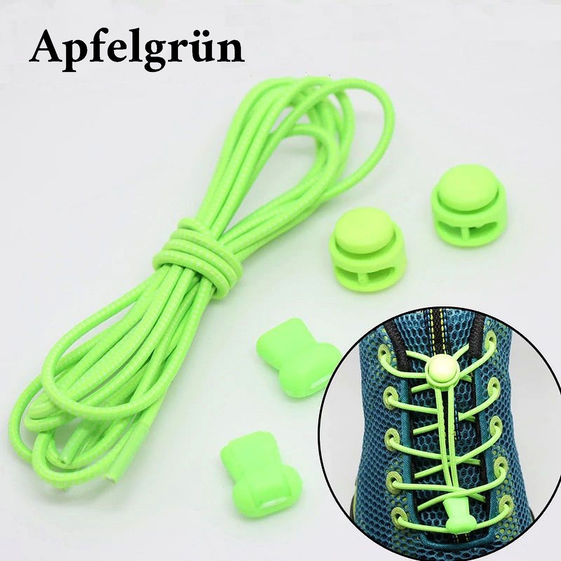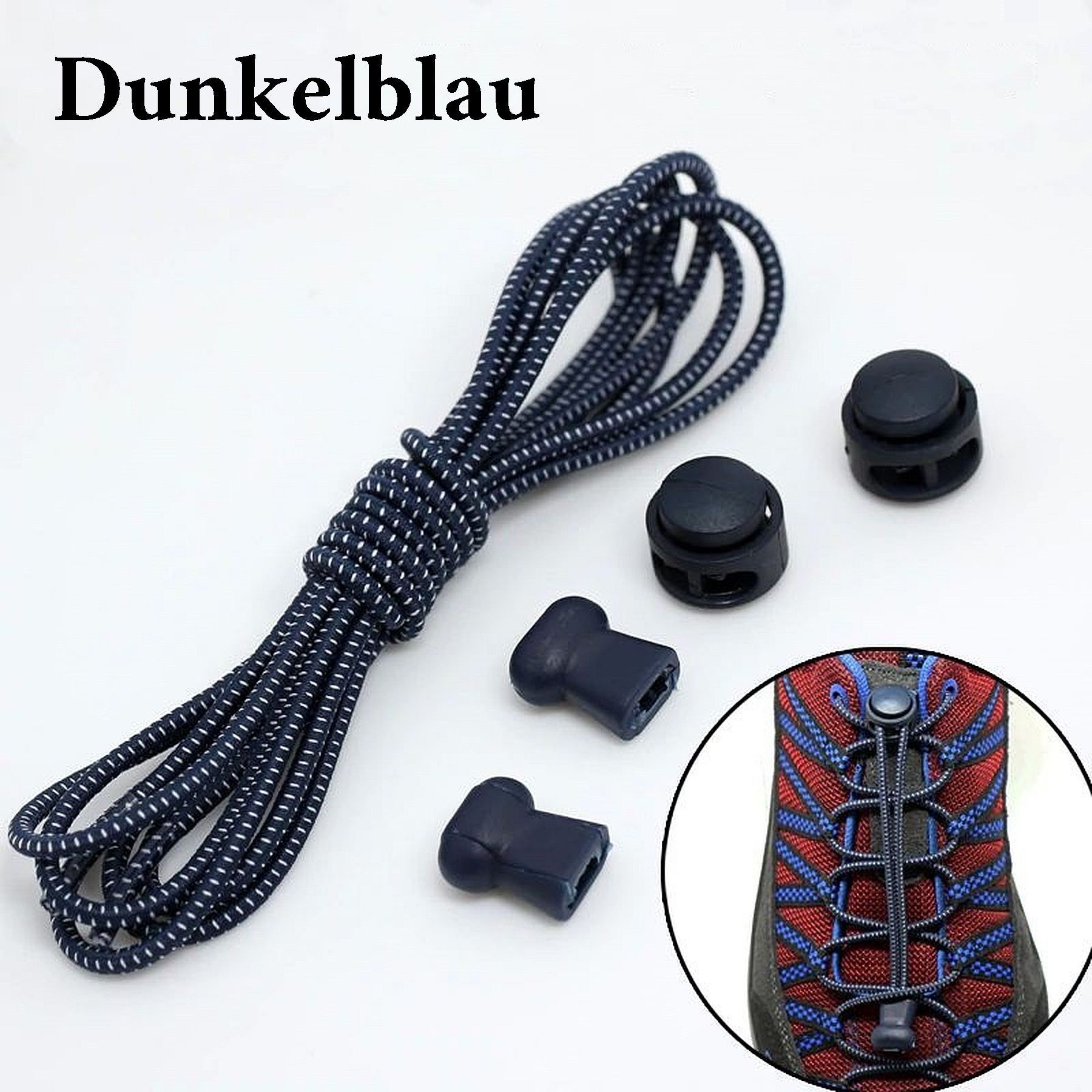 Elastische Schnürsenkel mit Schnellverschluss System ohne Binden Schuhbänder rund neu