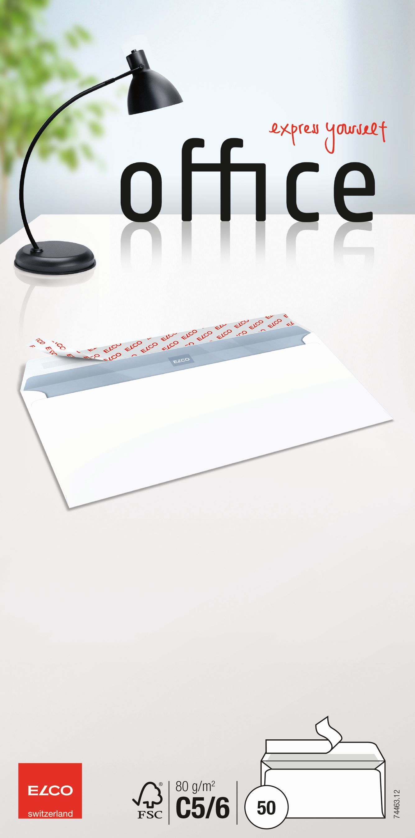 Elco 74463.12 Briefumschlag Office C5/6 DL+ hochweiss, Haftklebung, 80 g/qm, 50 Stück