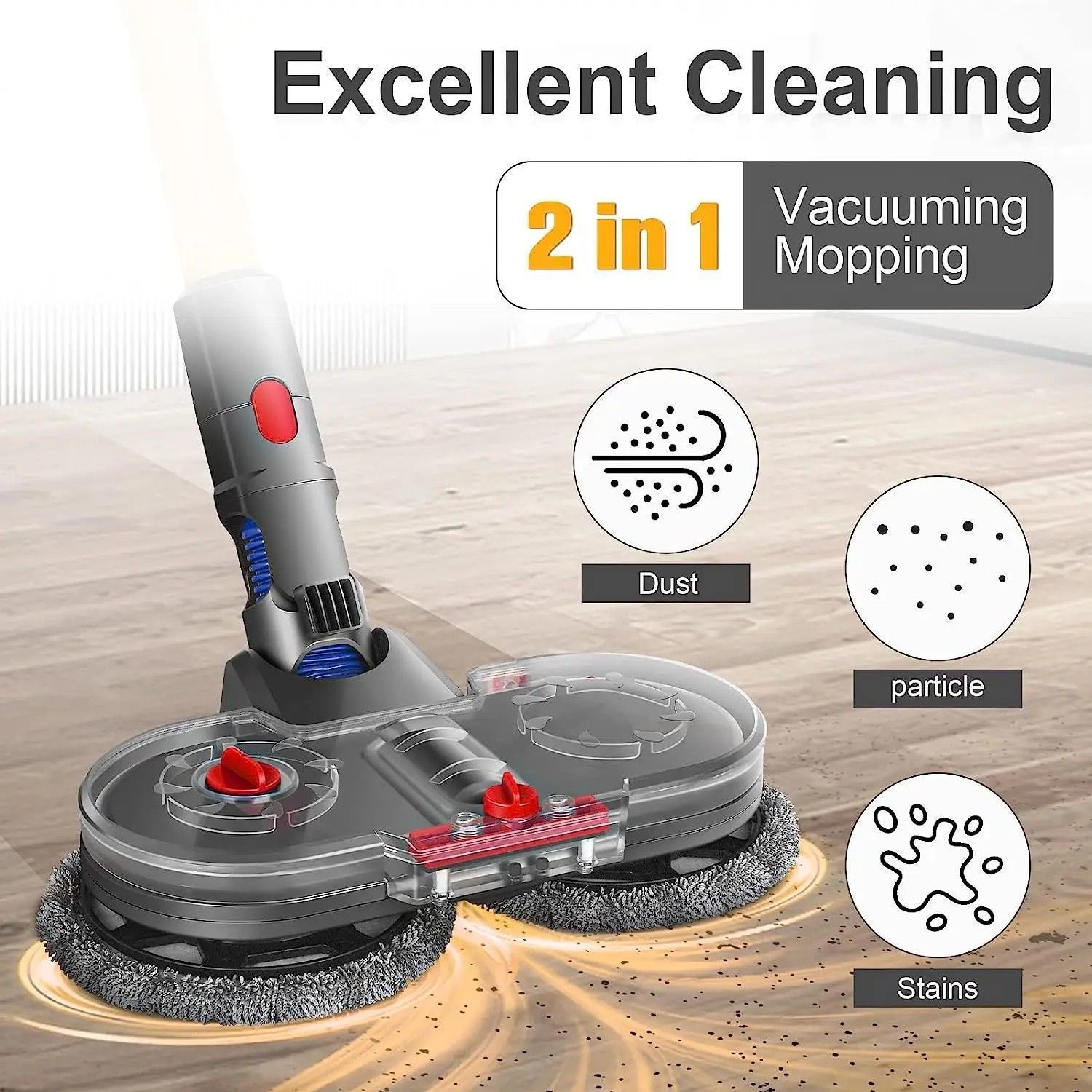 Elektrischer Wischaufsatz für Dyson V12 Digital Slim, V10 Slim Akku-Staubsauger, Wischkopf + Wassertank + 6 Wischtücher EuroEuroHochgeschwindigkeits-RotationEuroDer Dual-Motor dreht sich mit einer hohen Geschwindigkeit und wischt mit einer hohen Geschwindigkeit, 150 Umdrehungen pro Minute, um hin un