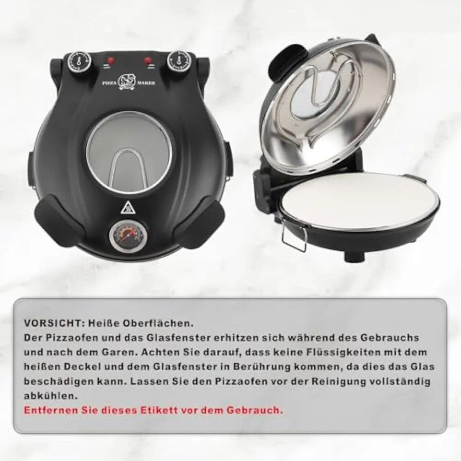Electric Pizza Maker, 1200W 31cm, 420°C, 5 Temp Levels, Flame Resistant Stone Plate