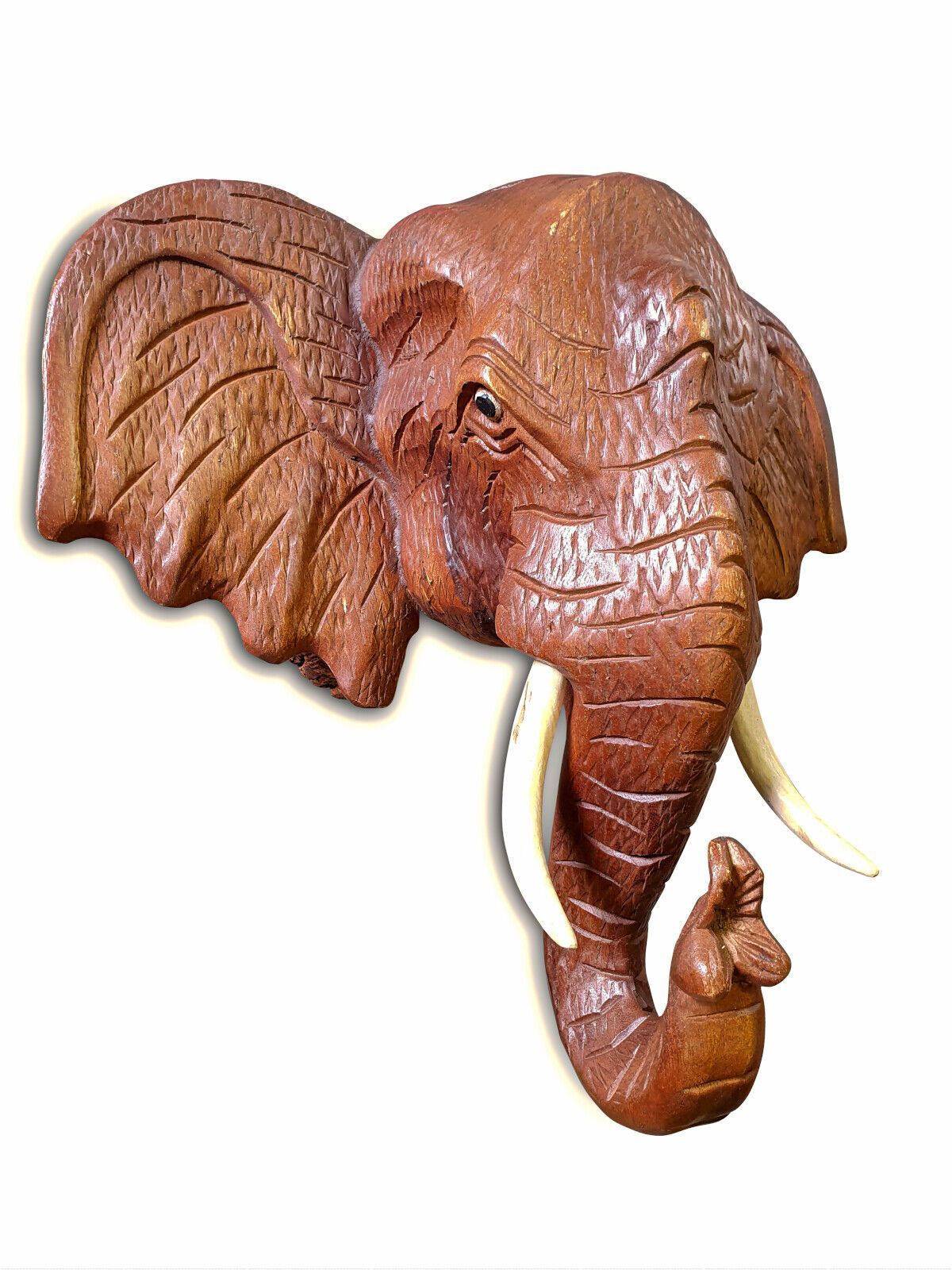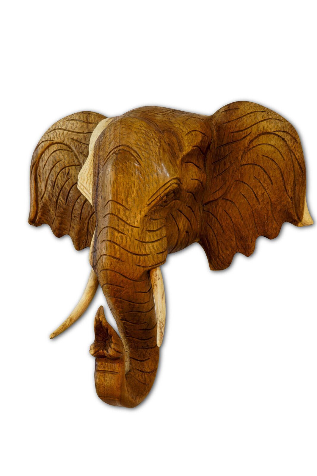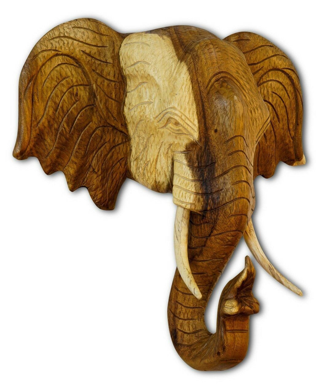 Elefanten Kopf Wandrelief Massiv Holz Elefant Tierkopf Wanddeko Thai Wandbild