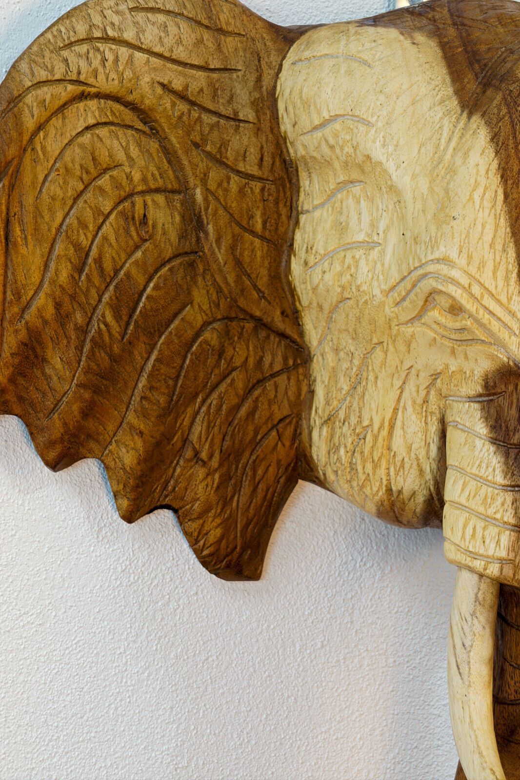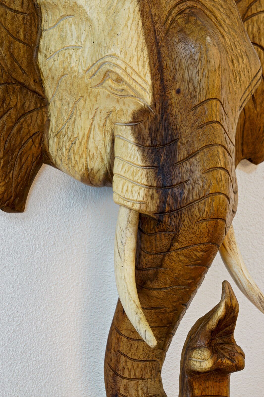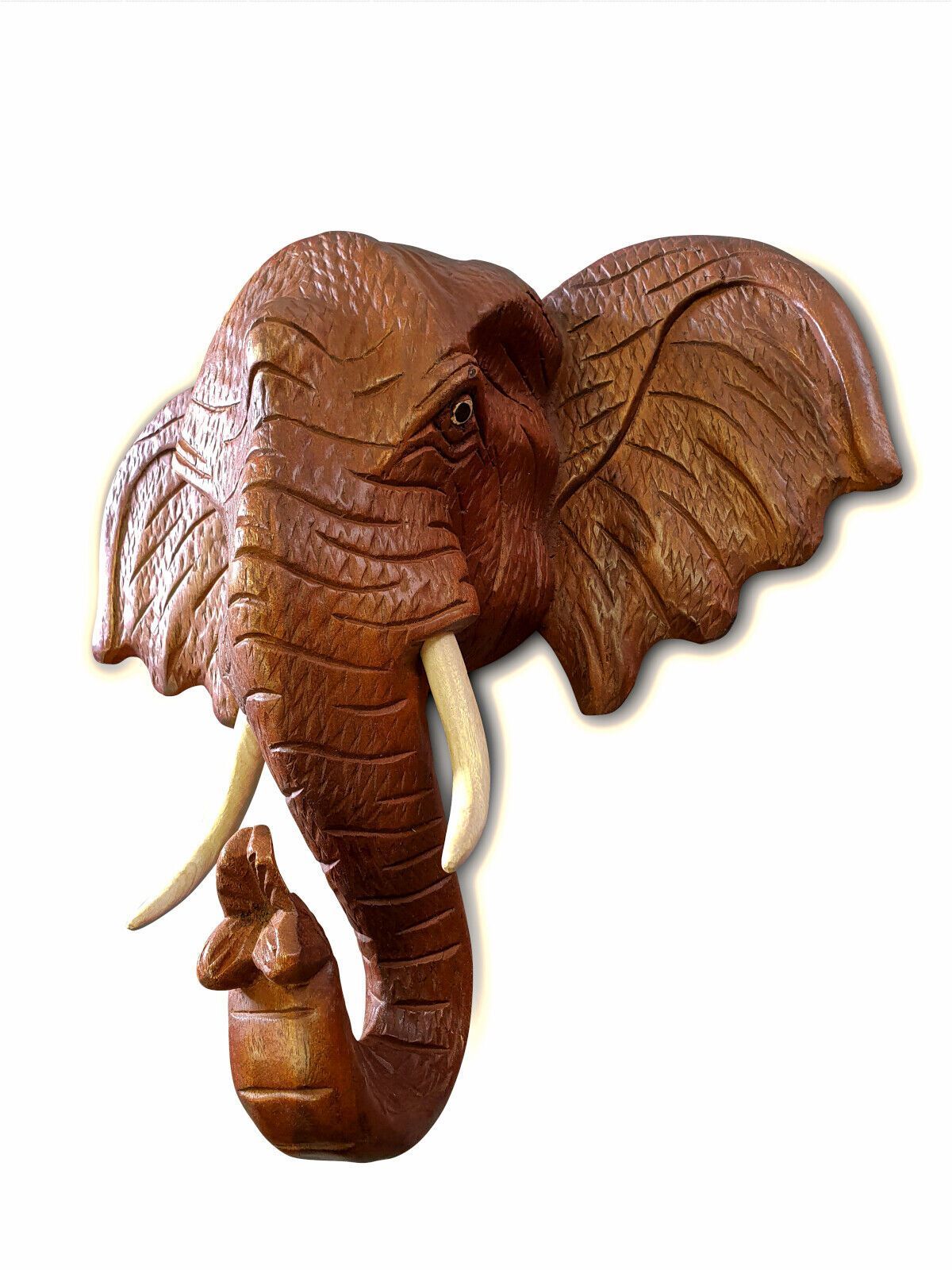 Elefanten Kopf Wandrelief Massiv Holz Elefant Tierkopf Wanddeko Thai Wandbild