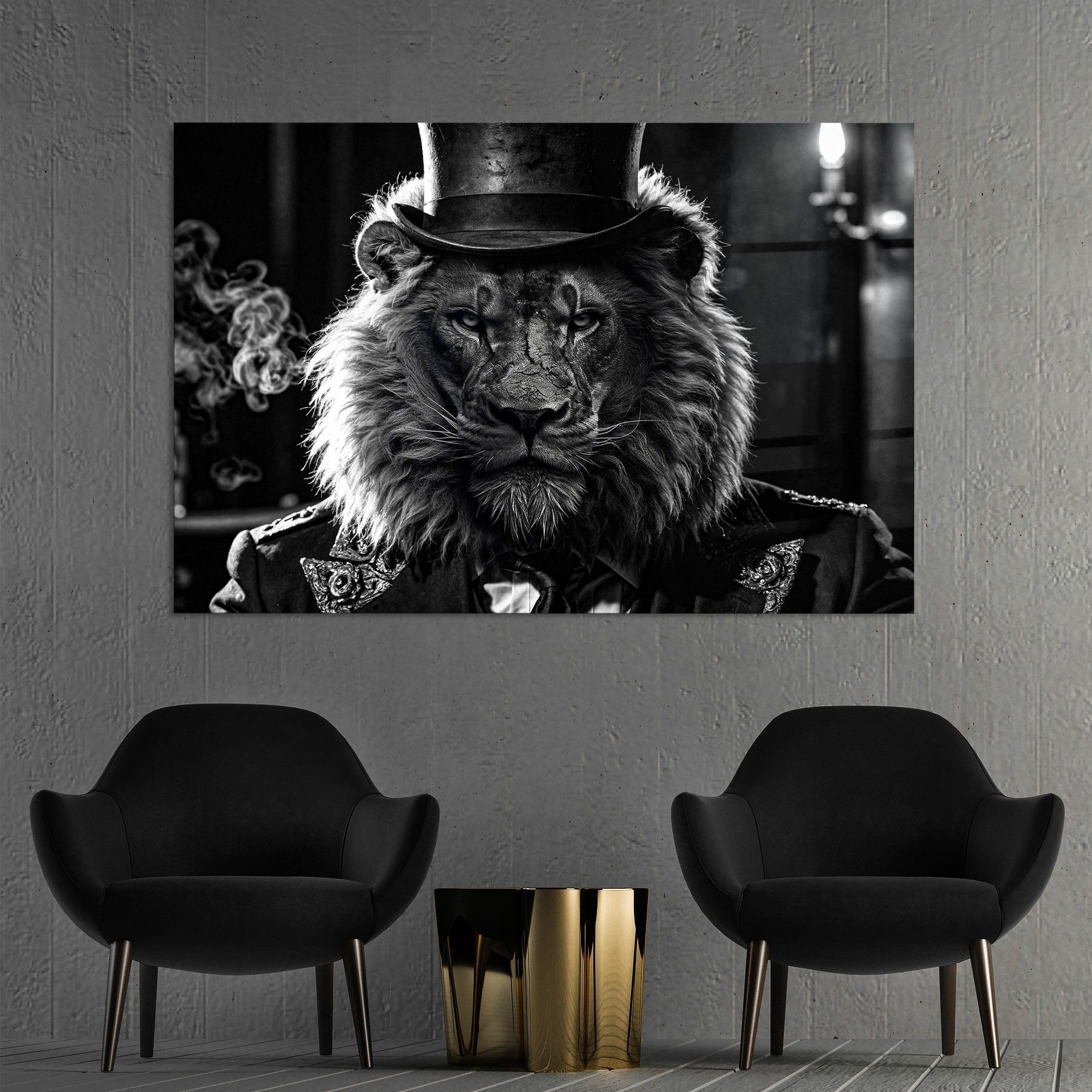Löwe Leinwandbild Mafia Lion Wandbild Tier Poster , Acrylglas + Aluminium