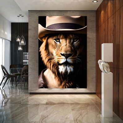 Löwe Leinwandbild Mafia Lion Wandbild Tier Poster , Acrylglas+ Aluminium