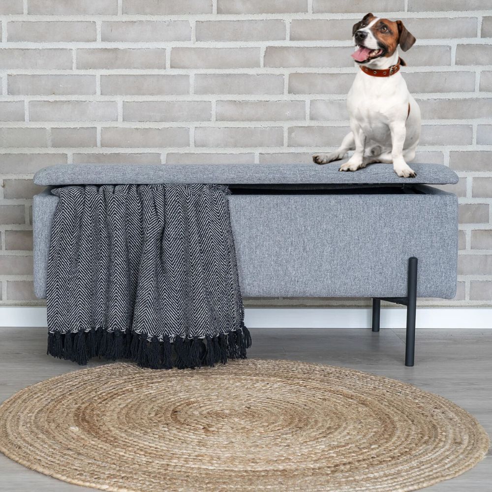 Elegante Bank NIZZA mit Stauraum 95cm Strukturstoff hellgrau Sitzbank