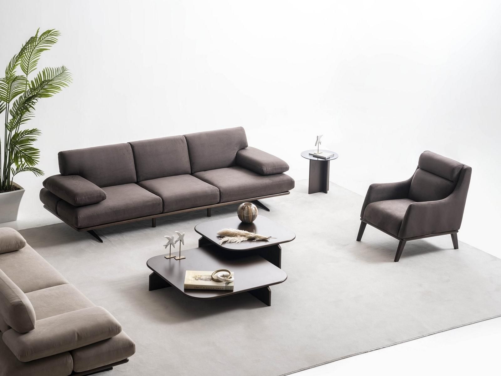 Elegante Graue Sitzgarnitur Edler 4-Sitzer Couchtisch Beistelltisch