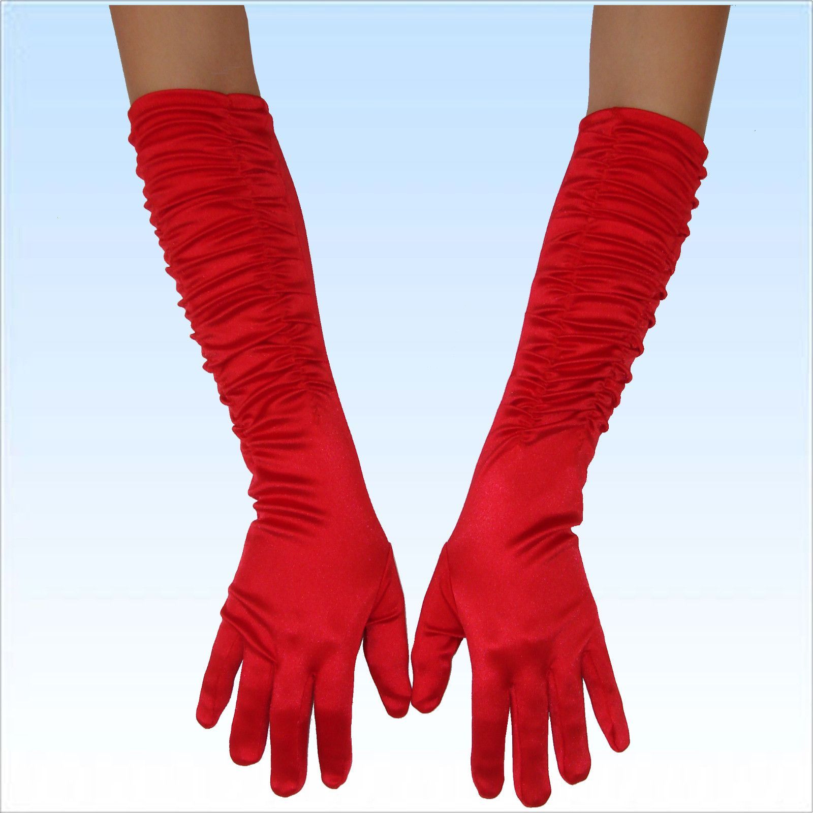 Elegante Handschuhe rot gerafft lang langer festlicher Handschuh Damenhandschuh