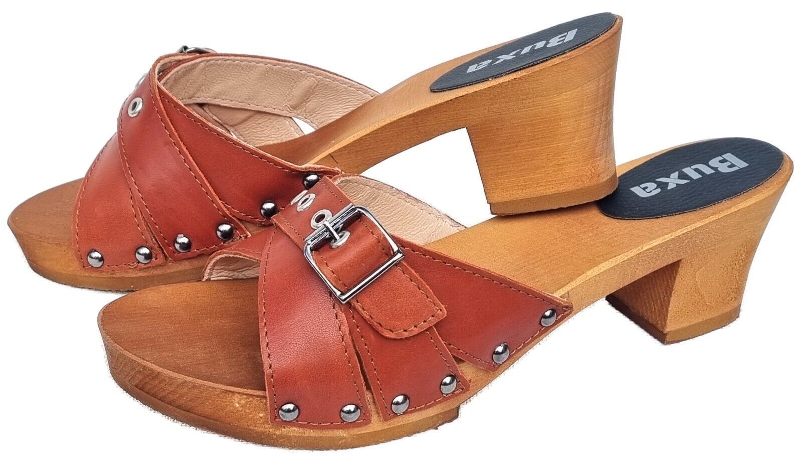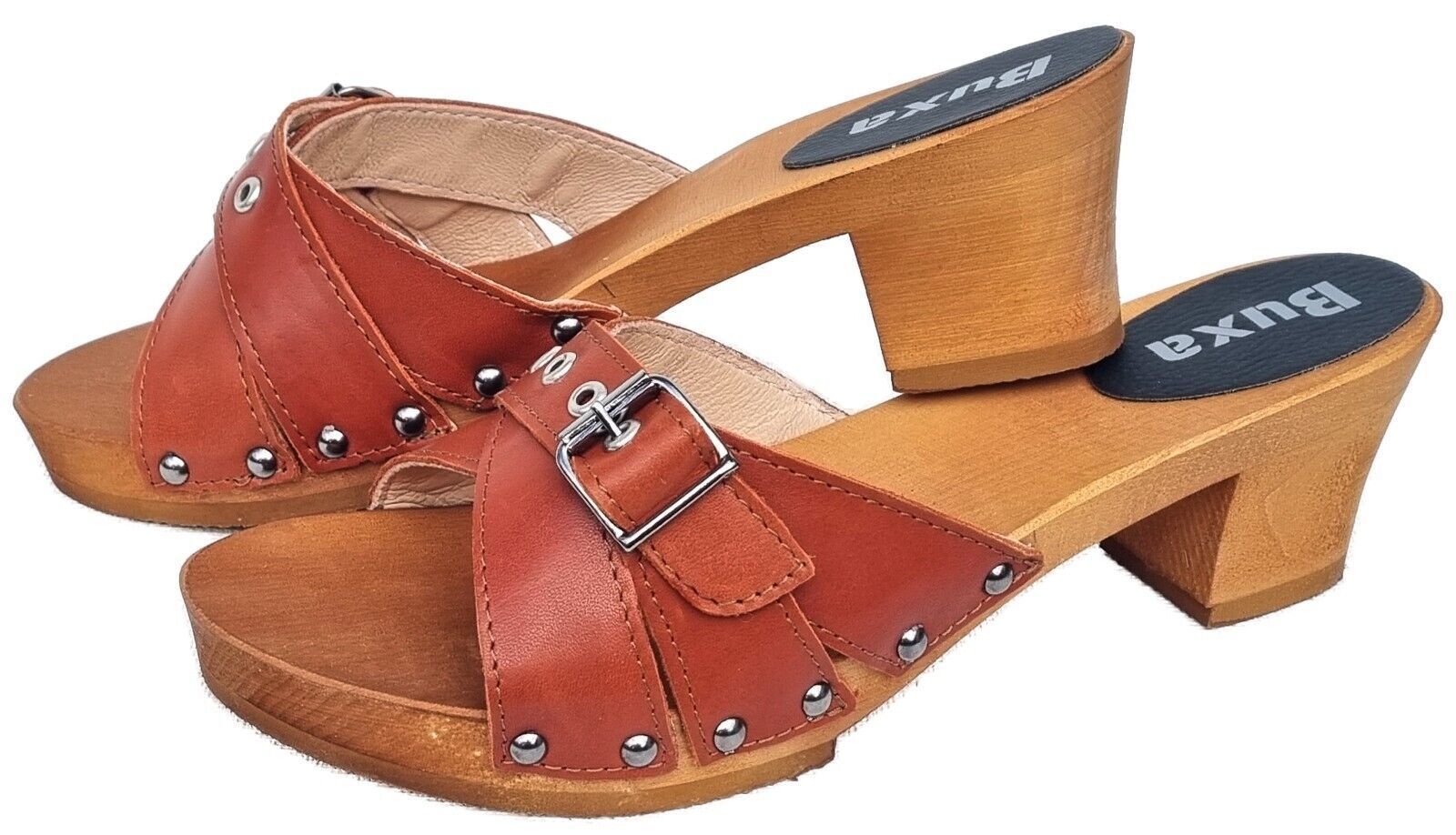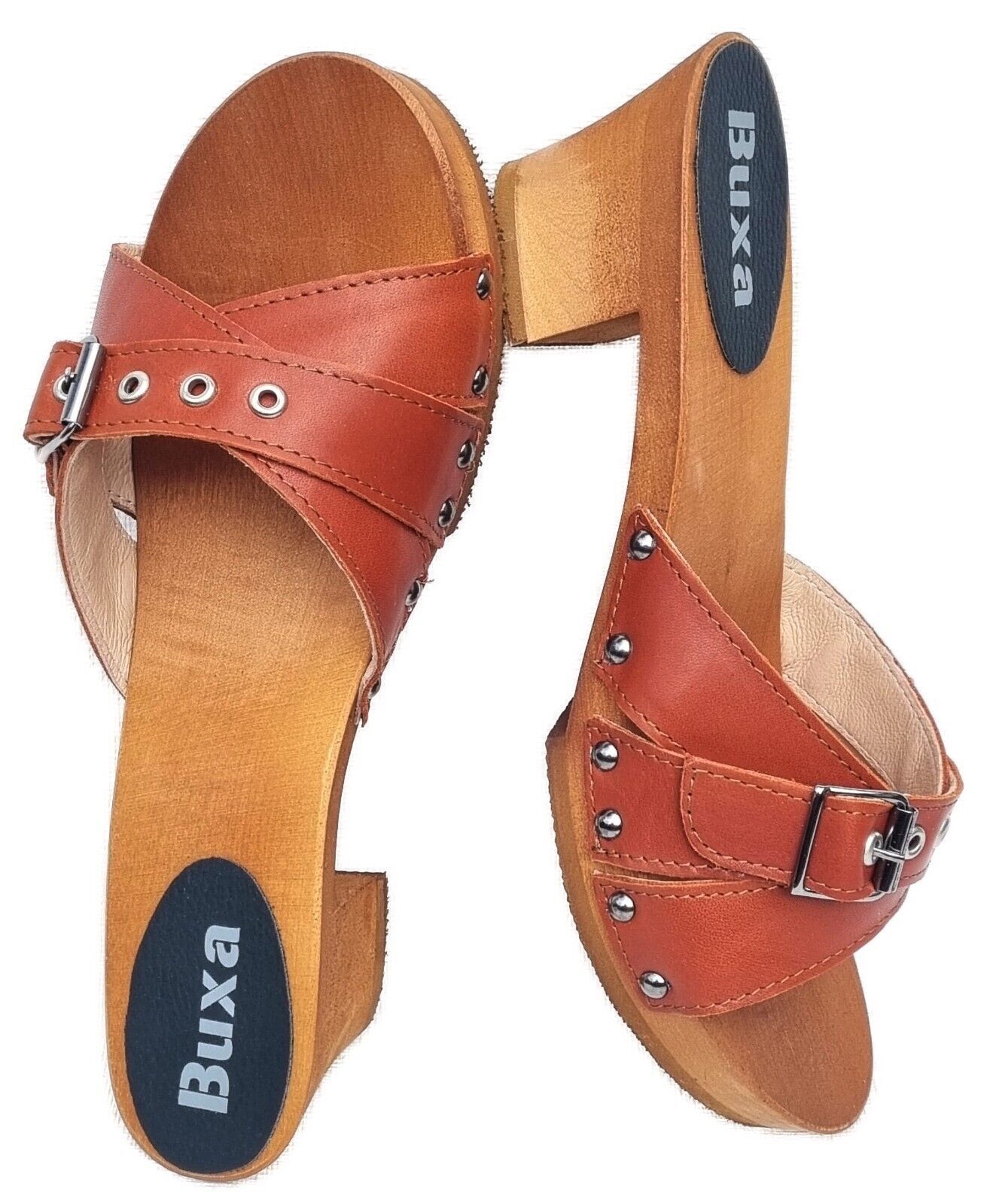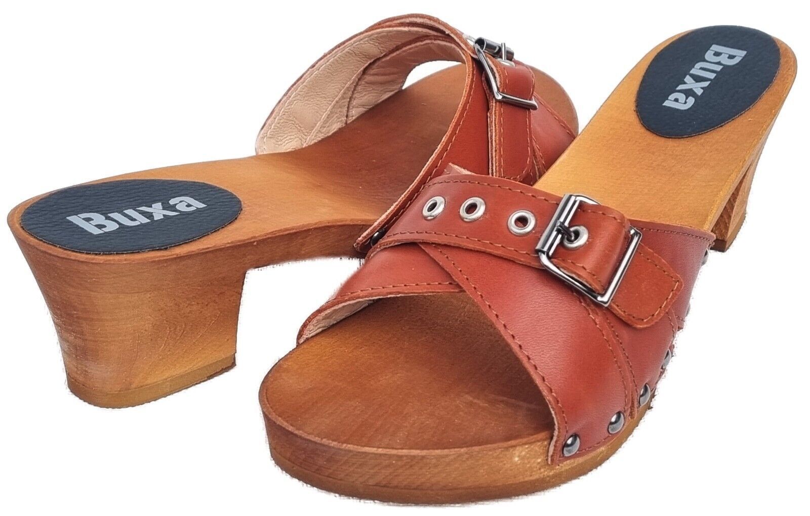 Elegante HOLZ CLOGS *** Gr. 41 - ORANGE*** *** Gefertigt aus Holz; *** Obermaterial - Voll Rind Glattleder - *** Anatomische geformte Sohlen aus Naturholz *** Aussensohle - aus grob profilierter Gummi (rutschfest) *** Absatzhöhe: 5,0 cm *** Neu *** Sehr hochwertige Verarbeitung *** Ein reines Naturp