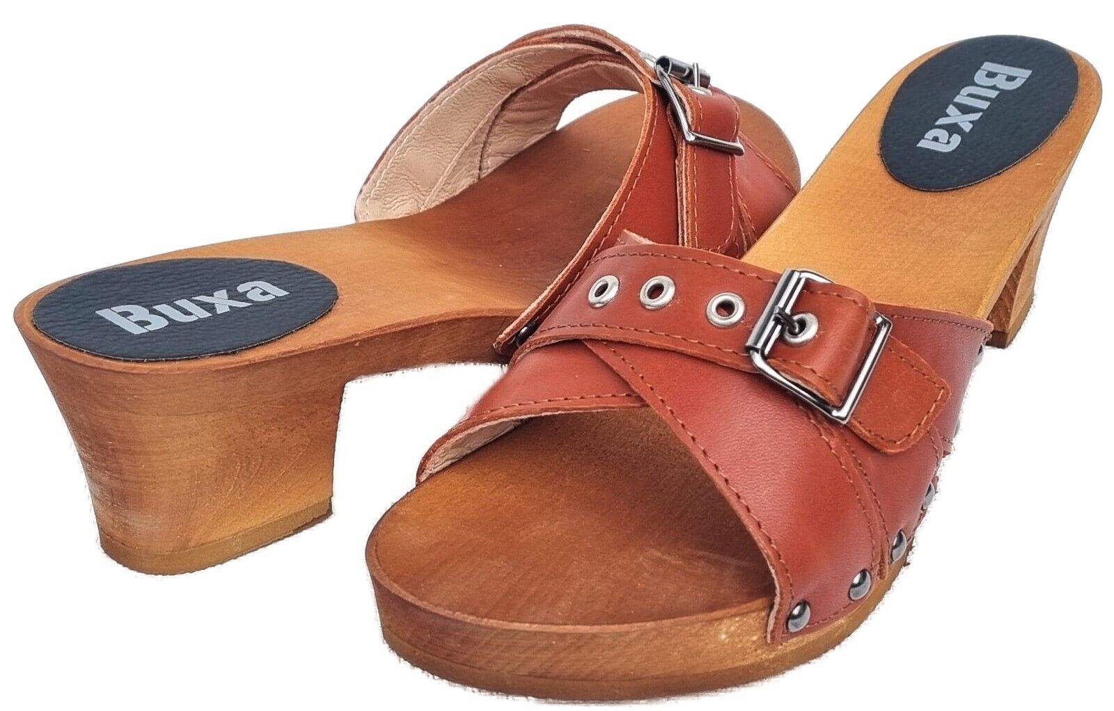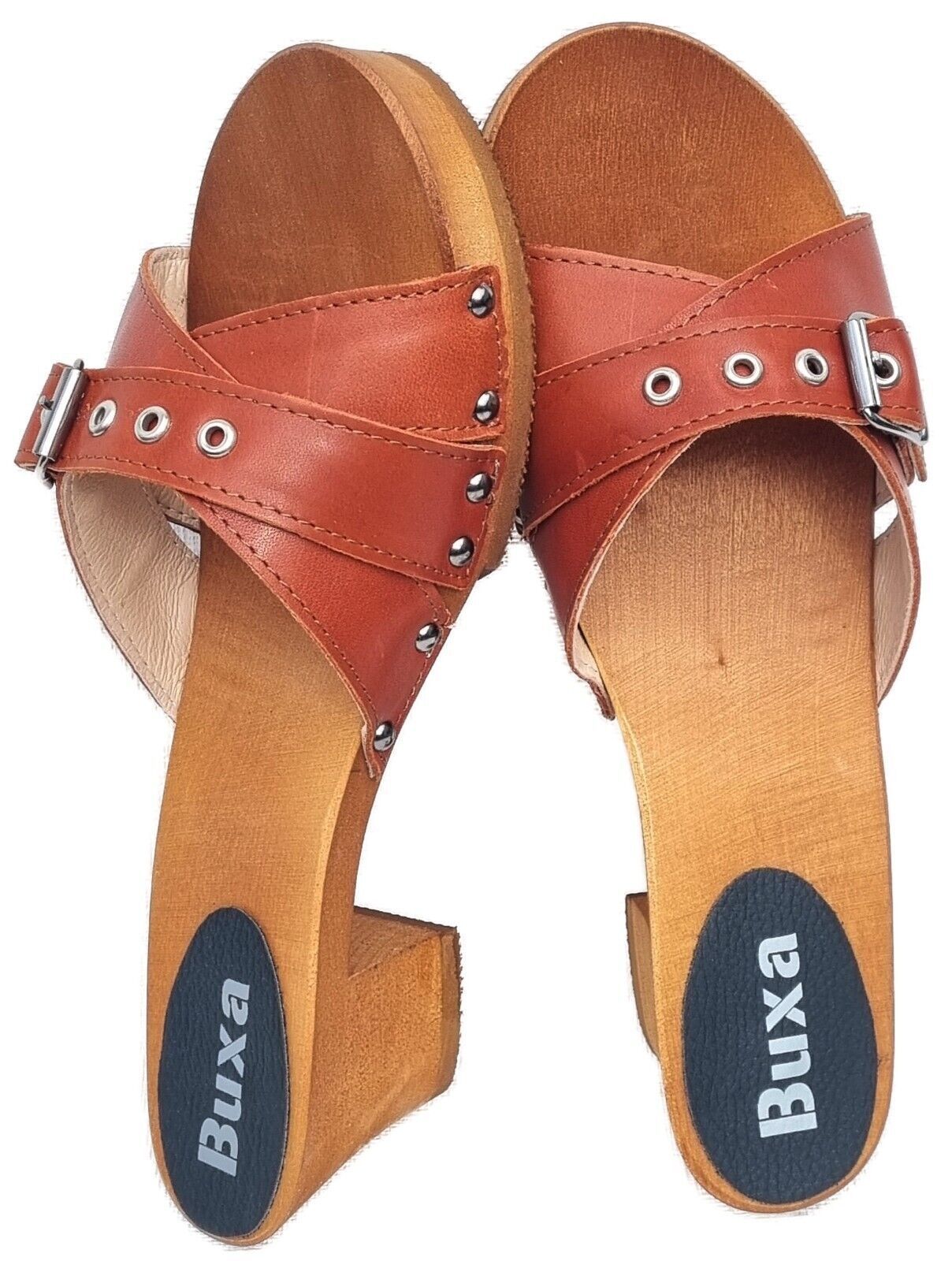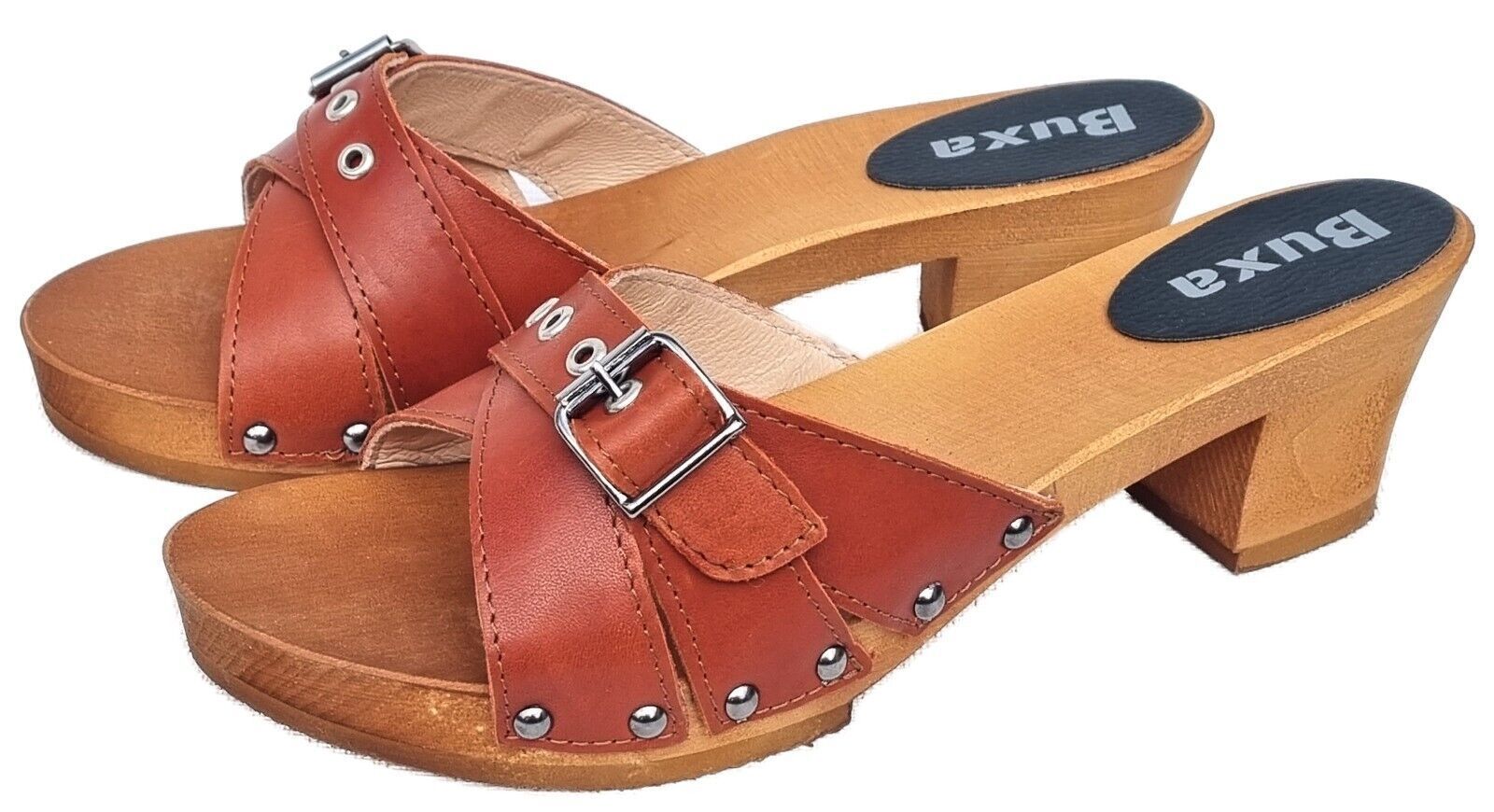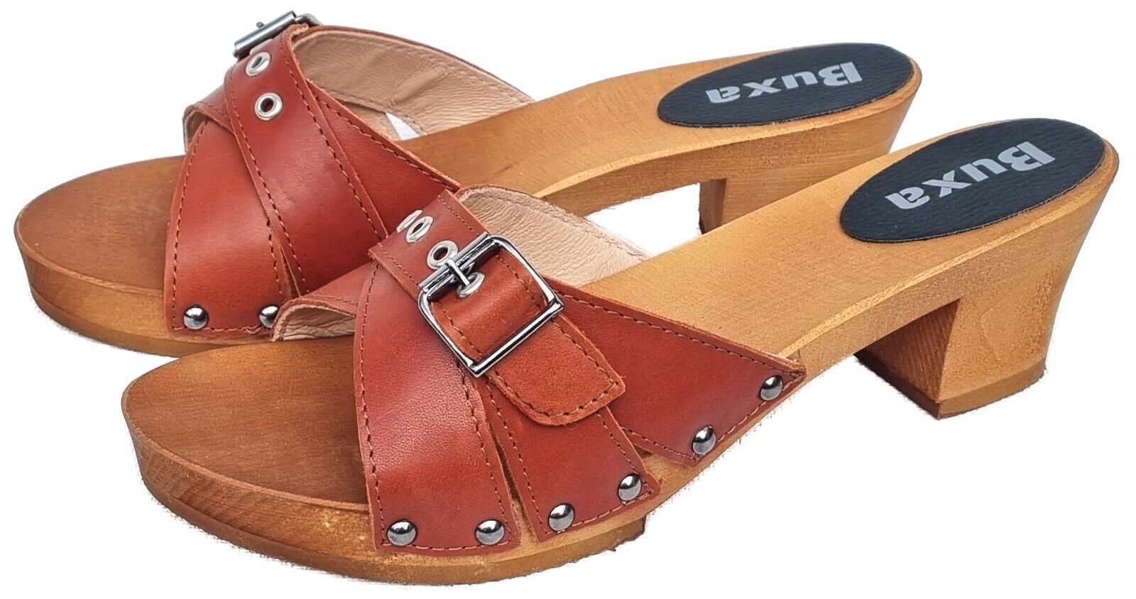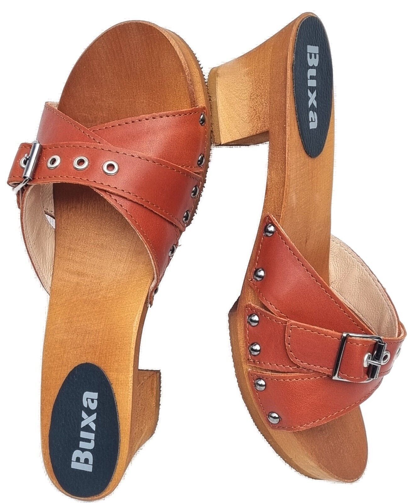 Elegante HOLZ CLOGS *** Gr. 41 - ORANGE*** *** Gefertigt aus Holz; *** Obermaterial - Voll Rind Glattleder - *** Anatomische geformte Sohlen aus Naturholz *** Aussensohle - aus grob profilierter Gummi (rutschfest) *** Absatzhöhe: 5,0 cm *** Neu *** Sehr hochwertige Verarbeitung *** Ein reines Naturp
