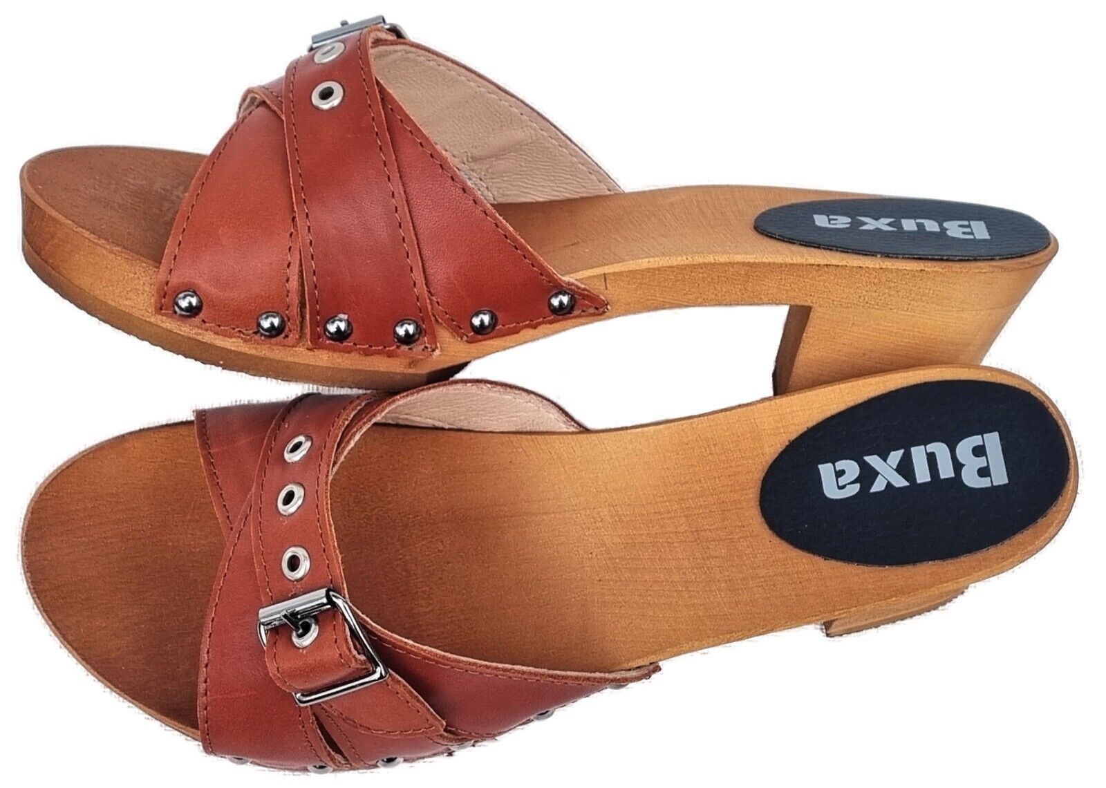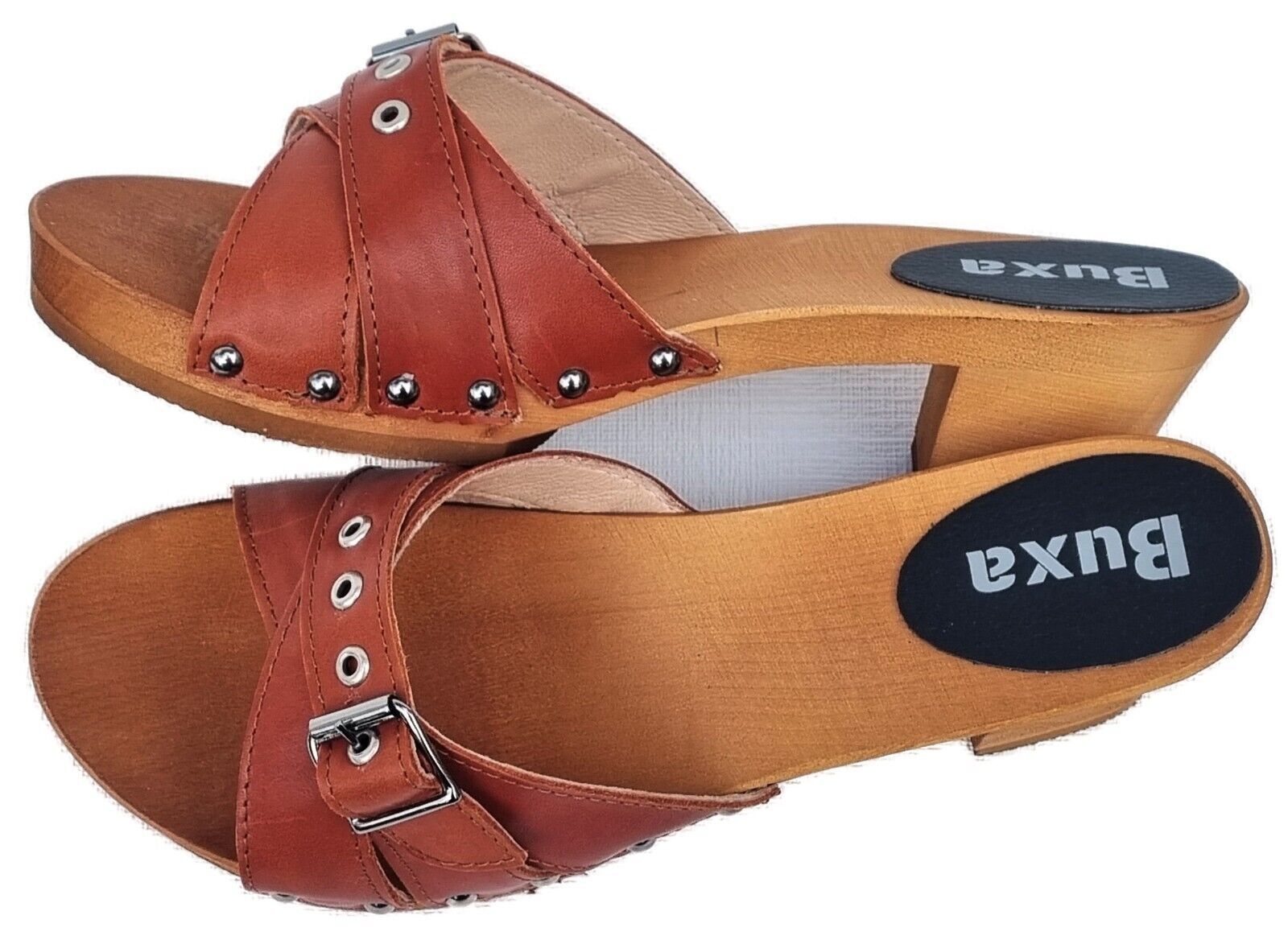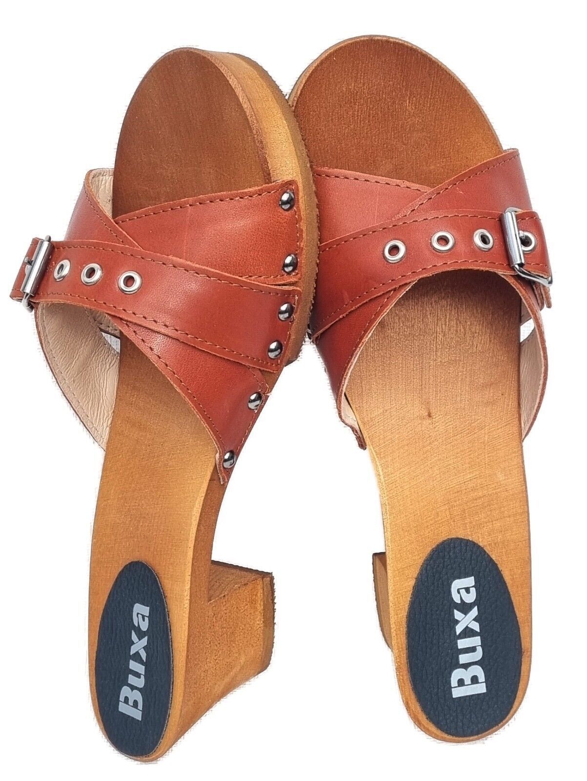 Elegante HOLZ CLOGS Pantolette Sandalen - Gr.41 * Orange* Echt LEDER Handarbeit