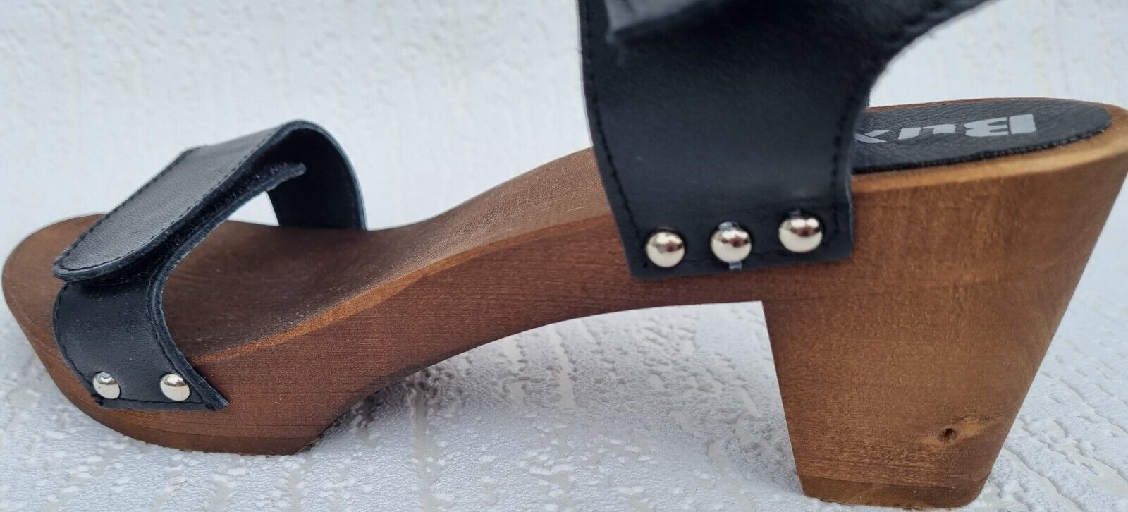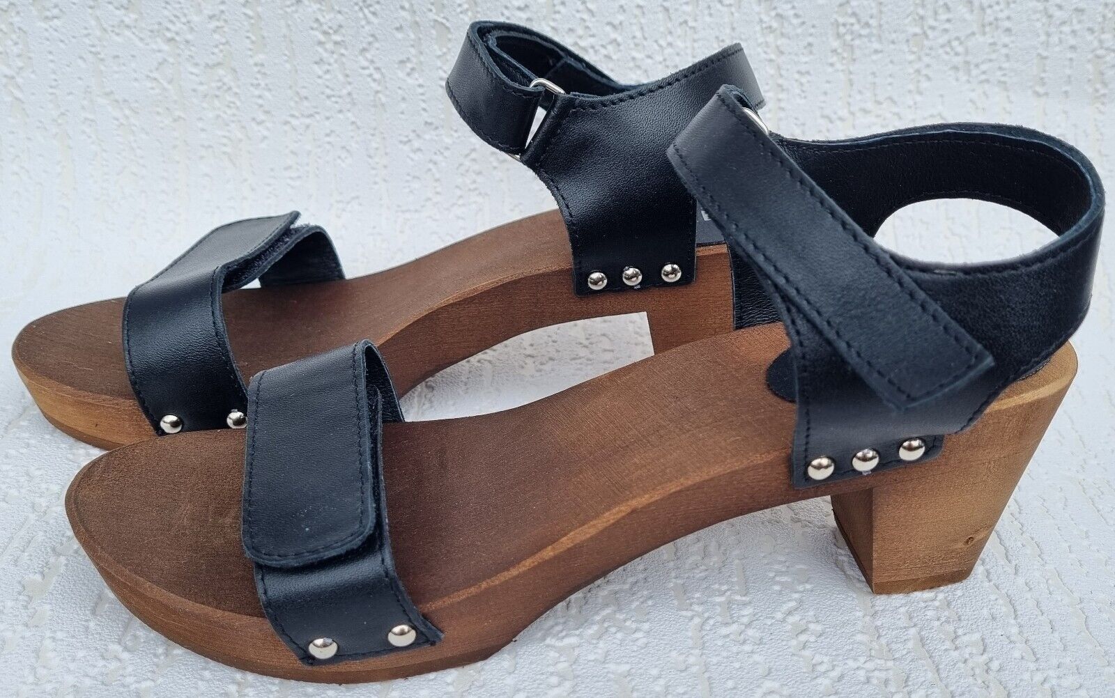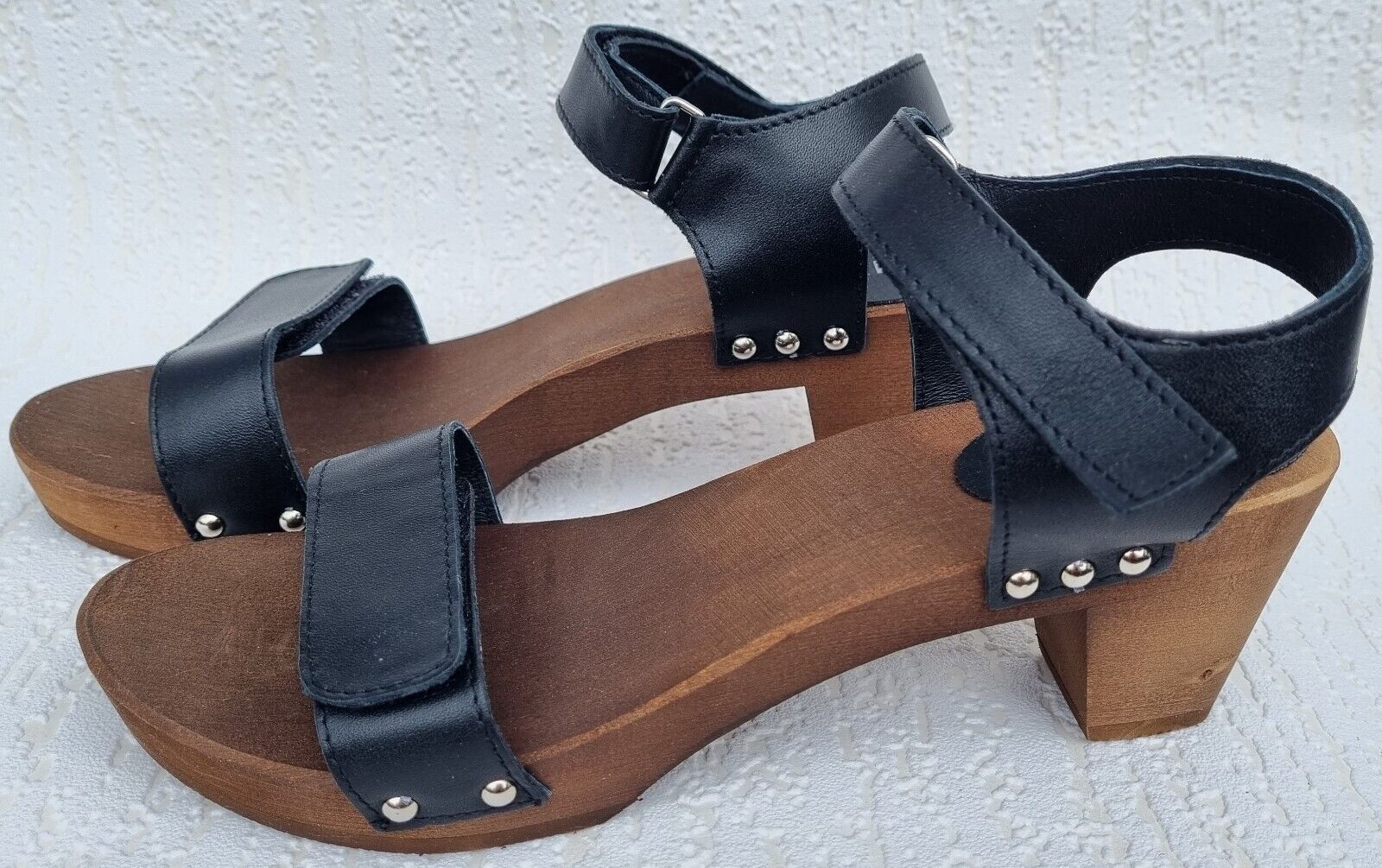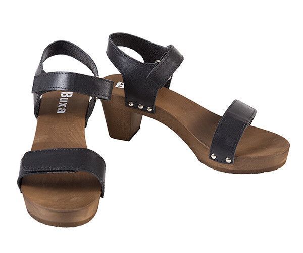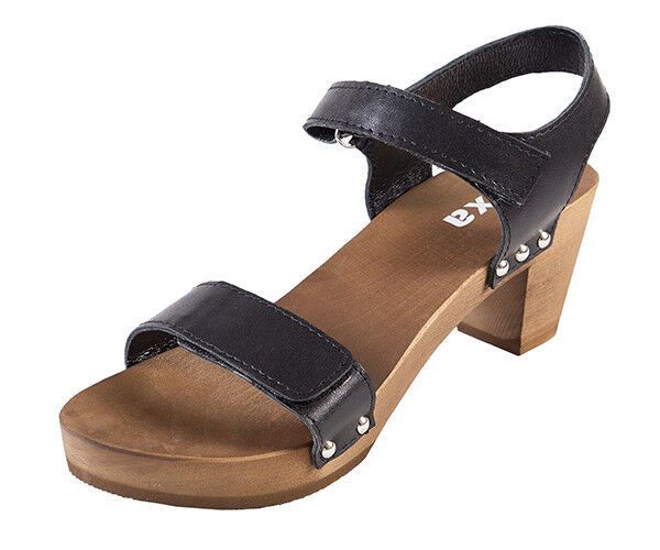 Elegante Schweden HOLZ CLOGS Sandaletten- Gr.40 * Schwarz* Echt LEDER Mit Fehler