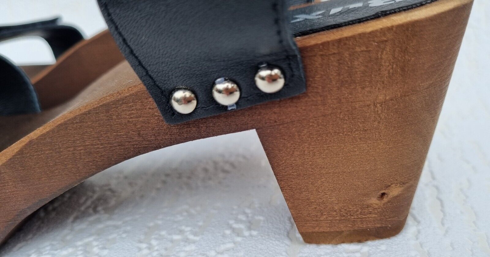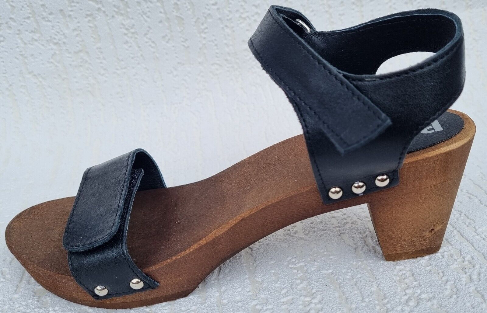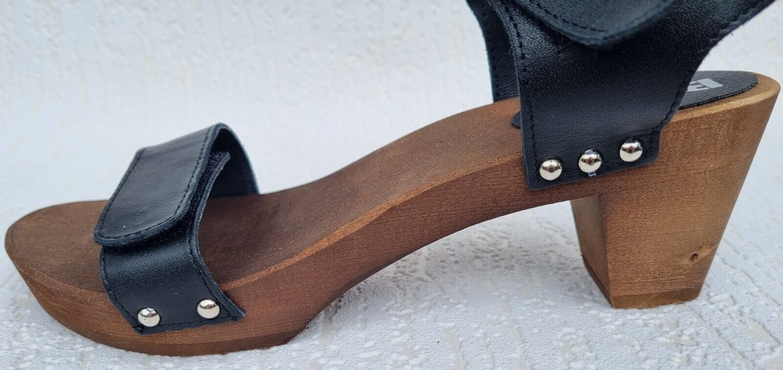 Elegante Schweden HOLZ CLOGS Sandaletten- Gr.40 * Schwarz* Echt LEDER Mit Fehler