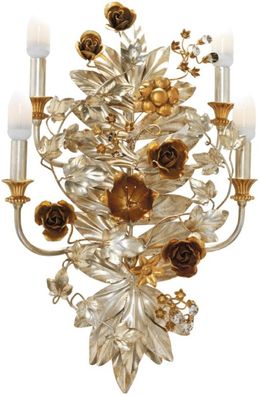 • Casa Padrino Luxus Jugendstil Kristall Wandleuchte Rosen & Blumen Silber / Gold 42 x