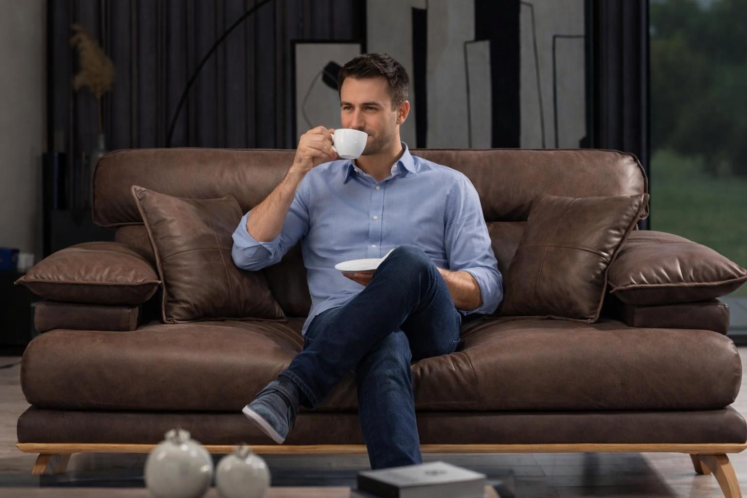 Brauner Dreisitzer Luxuriöse Wohnzimmer Polstercouch Moderner 3-er