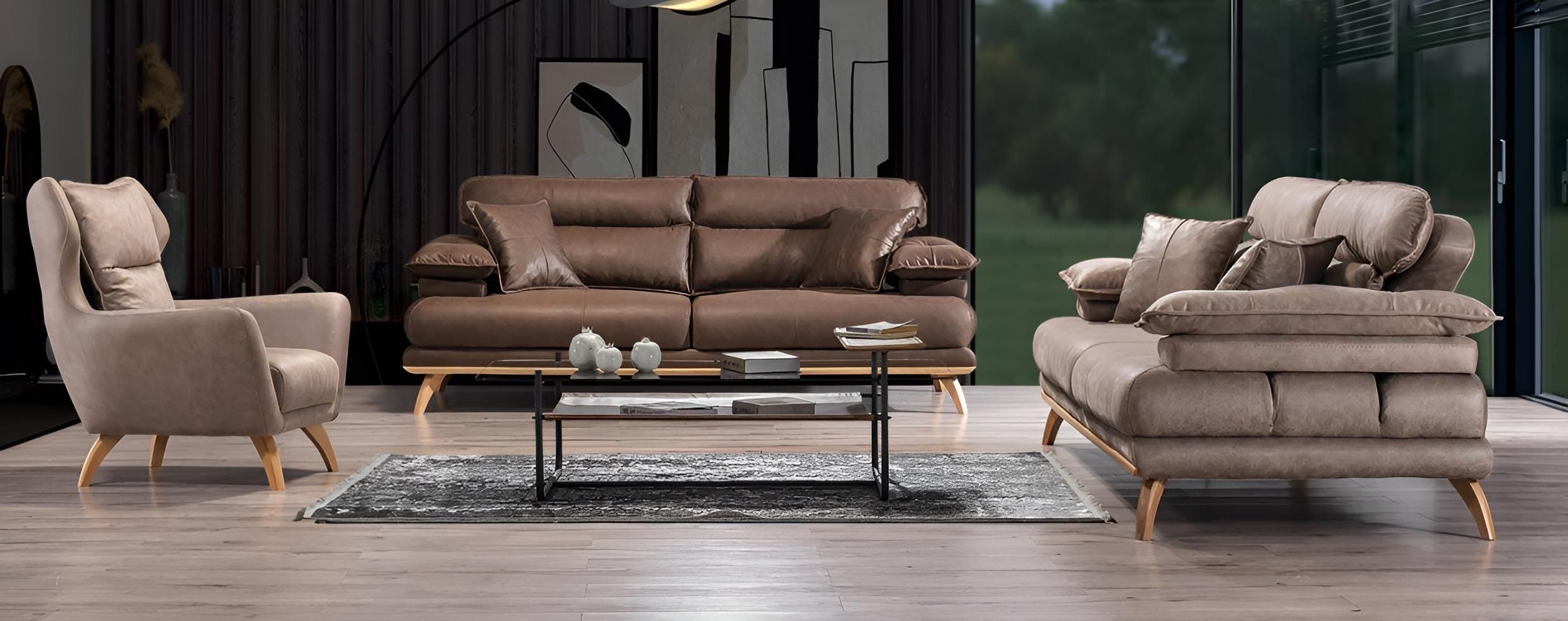 Braun-Beige Wohnzimmer Polstercouch Moderne Stoffsofas Sitzmöbel
