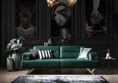 Grüner Dreisitzer Wohnzimmer Sofa Textilmöbel Polstercouchen Edelstahl
