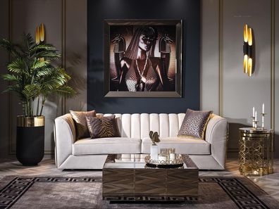 Stilvolles Beiges Designer-Sofa Polstercouch Wohnzimmer 3-Sitzer