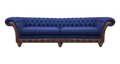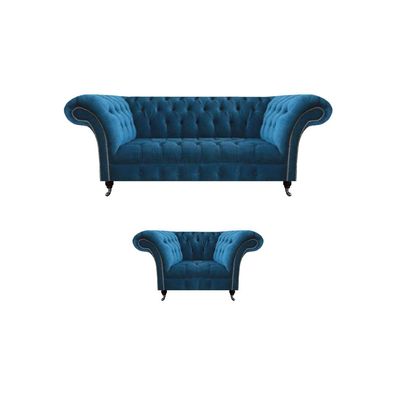 Wohnzimmer Chesterfield Blaue Sofagarnitur Stoffmöbel Polstercouchen