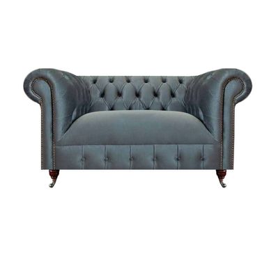 Dunkelblaue Chesterfield Polstercouch Wohnzimmer Zweisitzer Textil Möbel