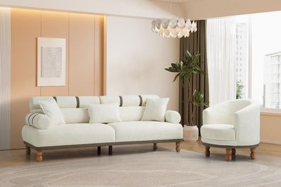 Weiße Wohnzimmer Textilgarnitur Designer Polstercouch Einzelsessel
