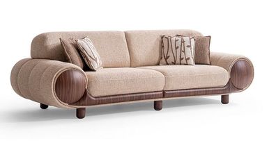 Beiges Wohnzimmer 4-Sitzer Sofa Designer Polstercouch Textilsofa