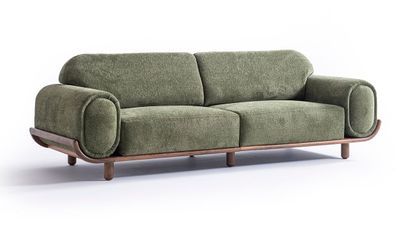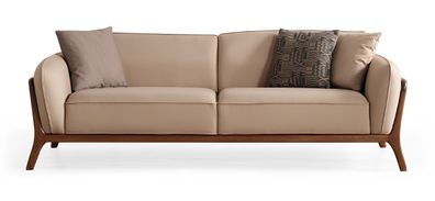 Eleganter Wohnzimmer Dreisitzer Designer Polstercouch Holzgestell