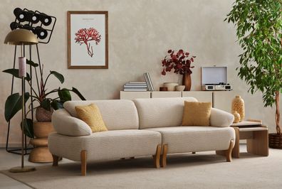 Wohnzimmer Beiger Viersitzer Luxuriöse Polstercouchen Holzgestell