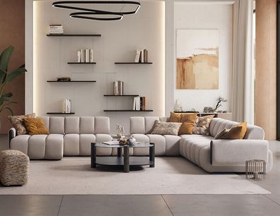 Beiges Textil Ecksofa Designer Wohnzimmer Sitzmöbel Polstercouch