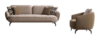 Elegante Wohnzimmer Beige Polstercouch Designer Textilsessel Möbel