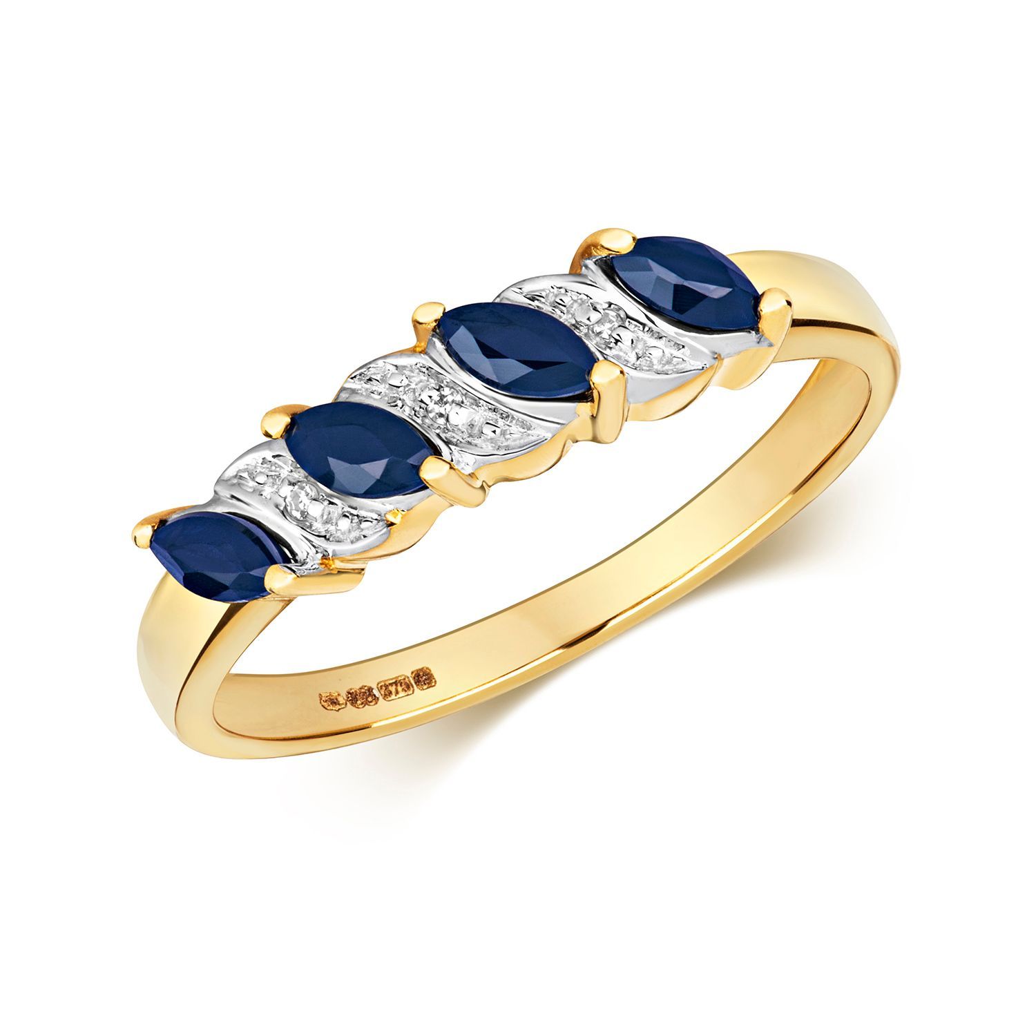 Eleganter 9 ct/Karat Gelb Gold Diamant Damenring Brillant-Schliff H - PK mit Saphir