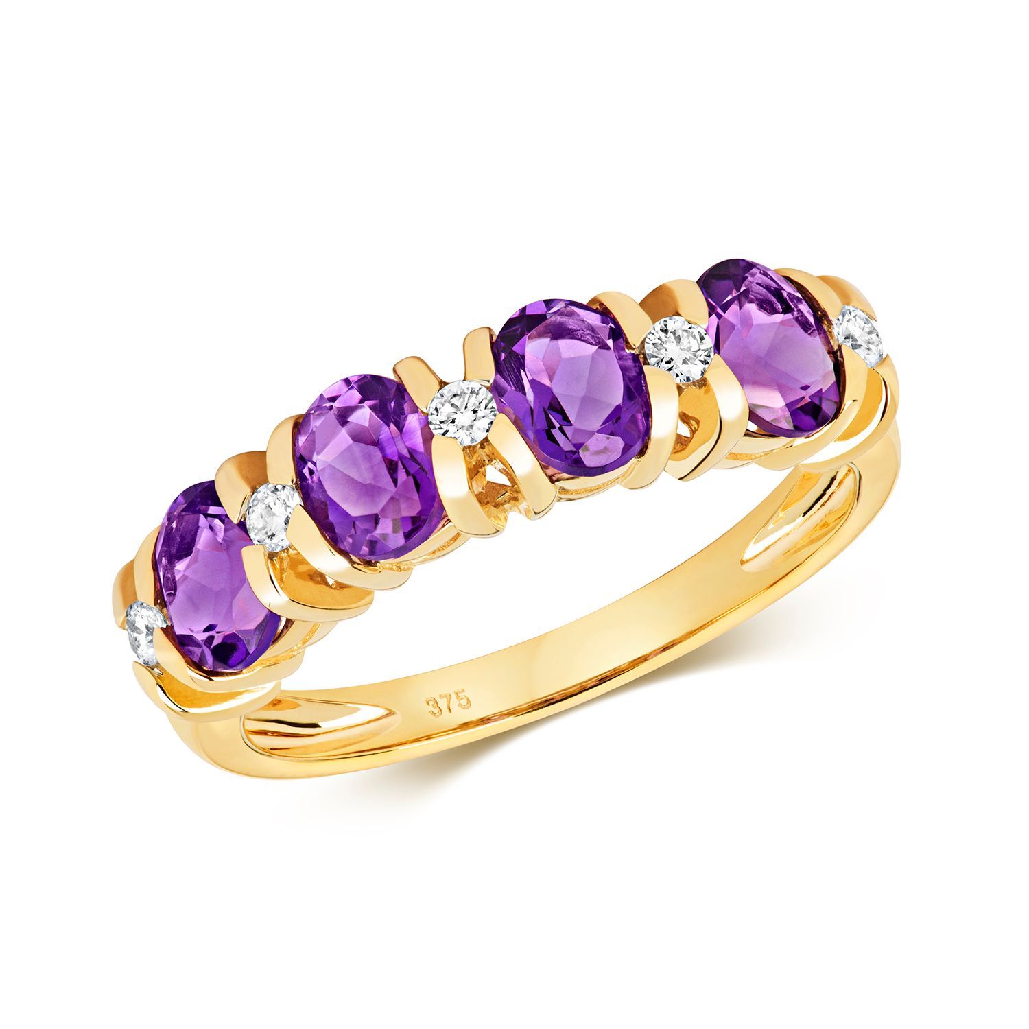 Eleganter 9 ct/Karat Gelb Gold Diamant Ring Brillant-Schliff 0.12 Karat mit Amethyst