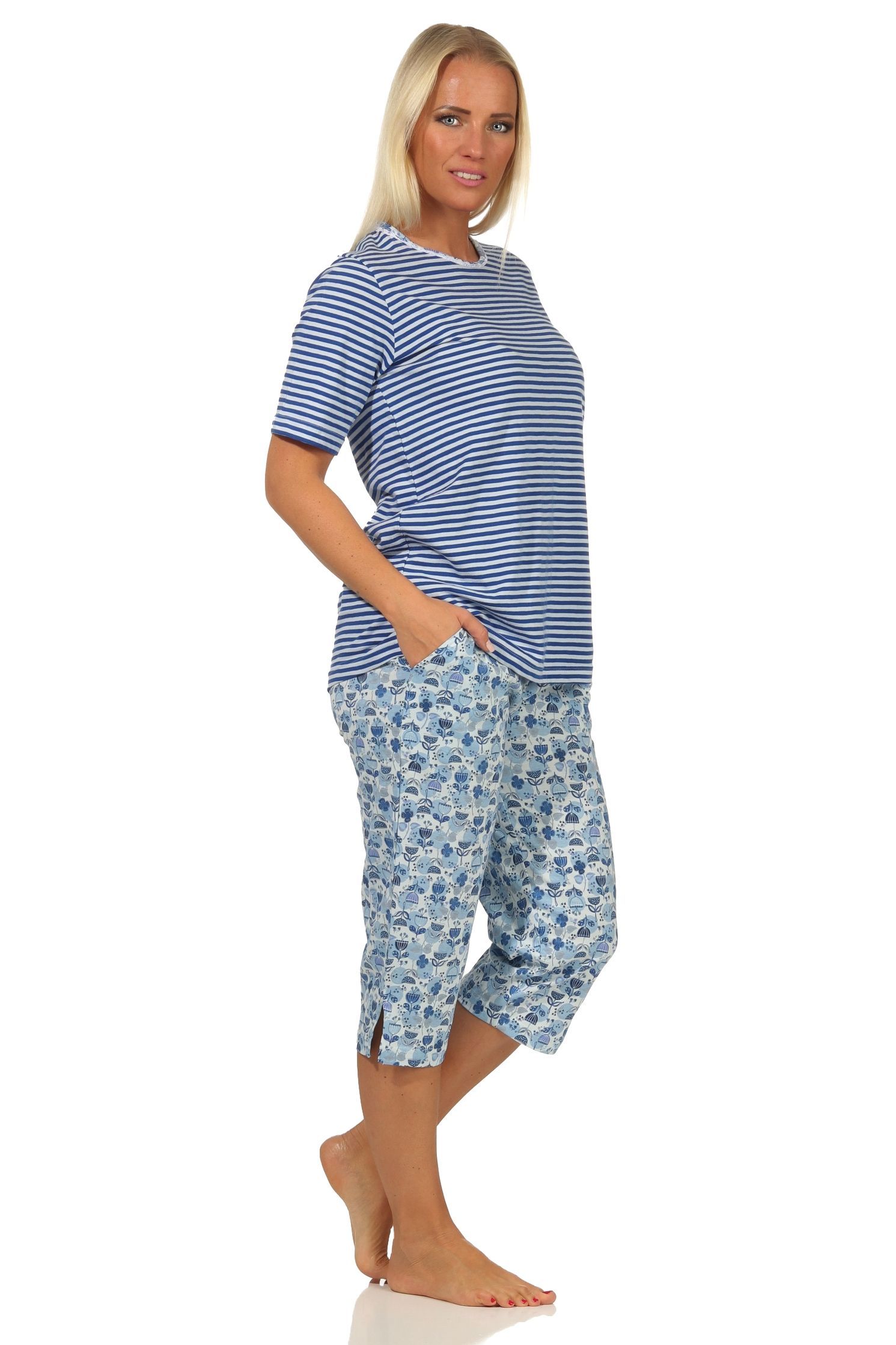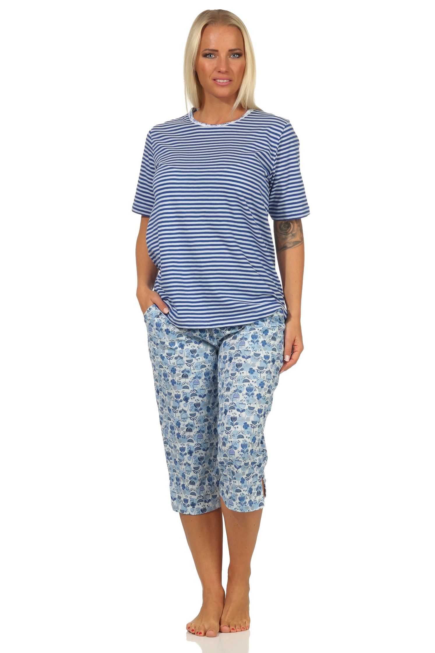 Eleganter Damen Capri Pyjama Schlafanzug kurzarm – auch in Übergrössen