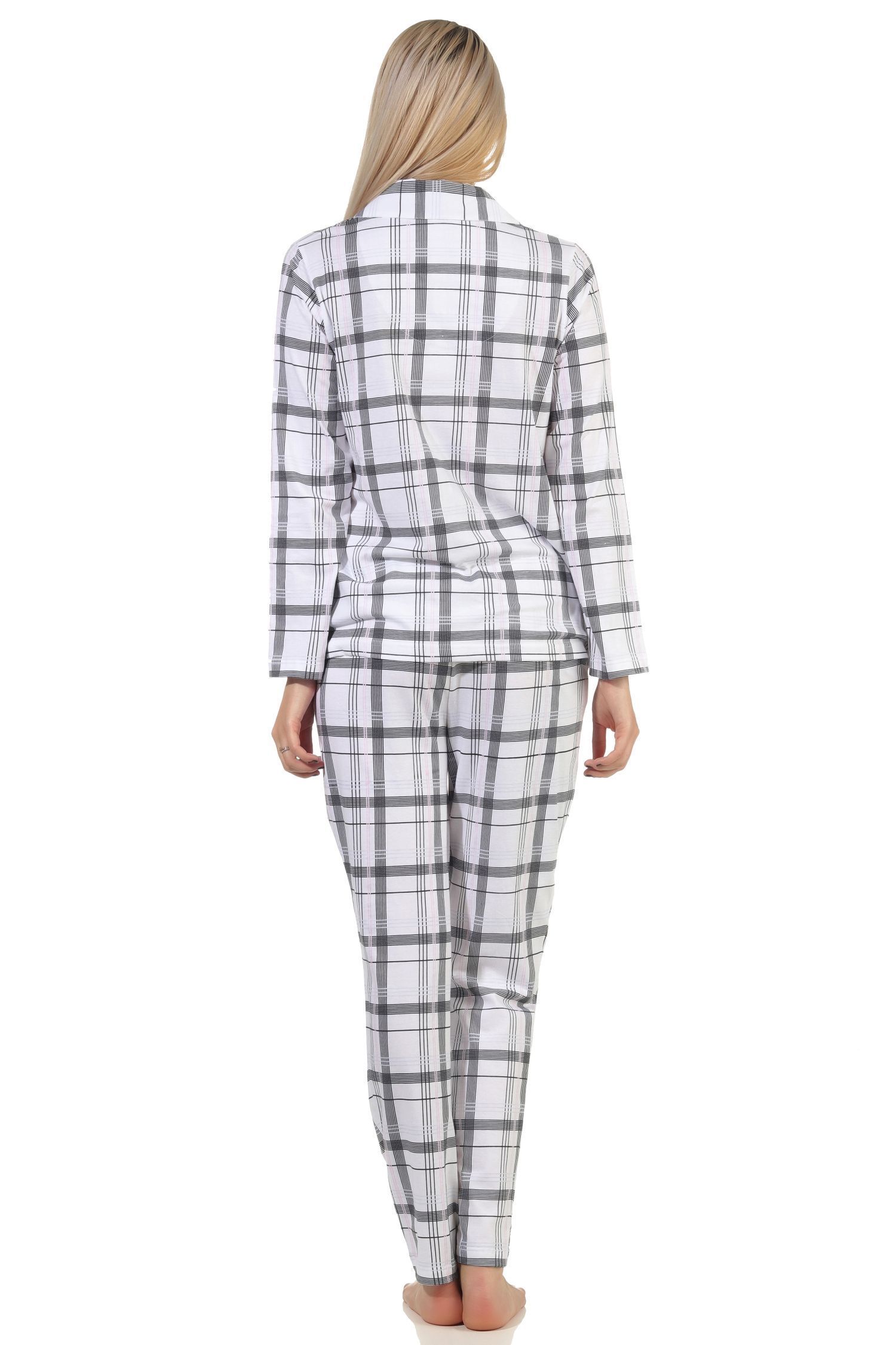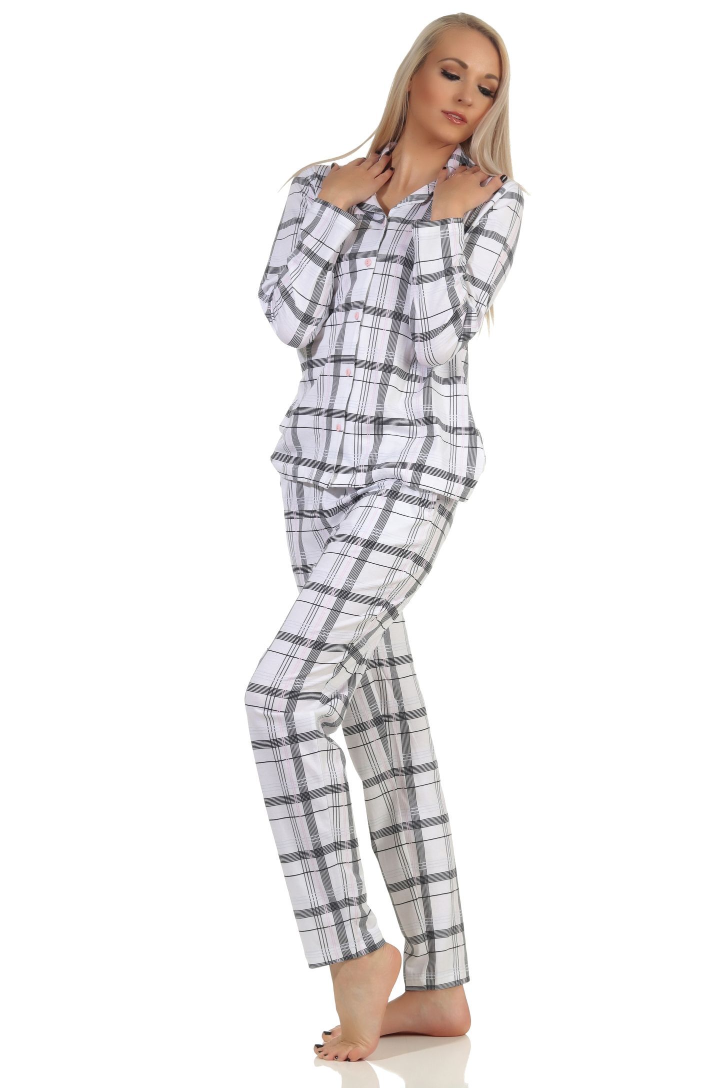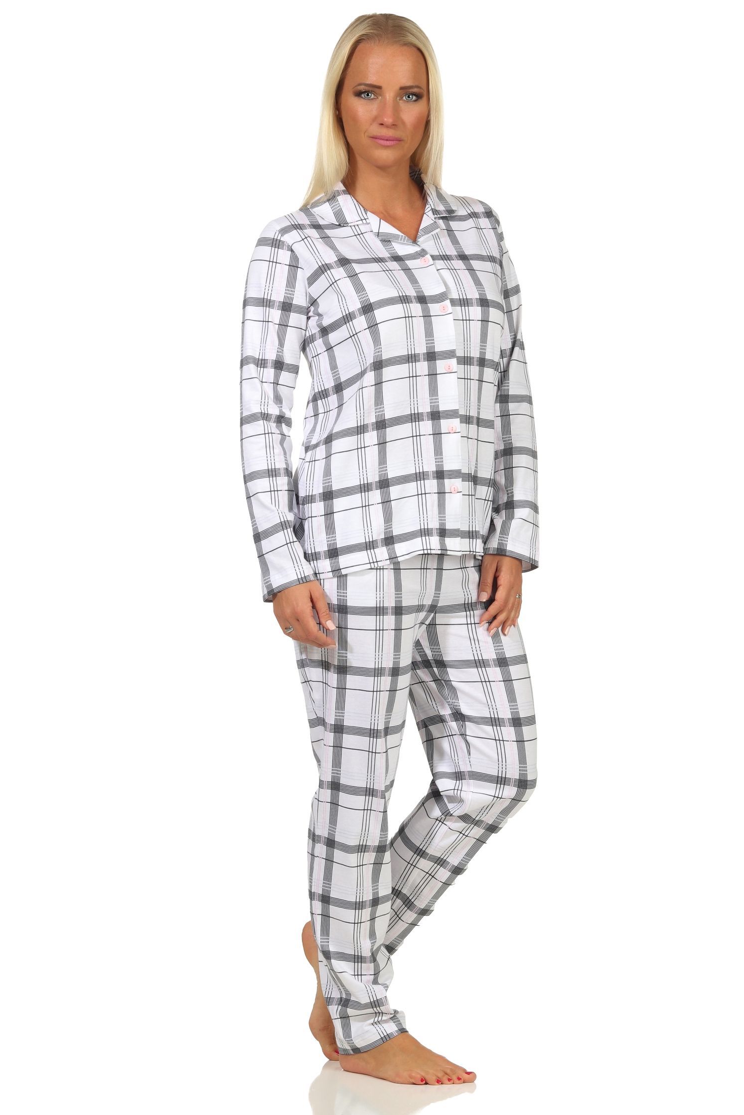 Eleganter Damen Schlafanzug Pyjama zum durchknöpfen in karierter Optik