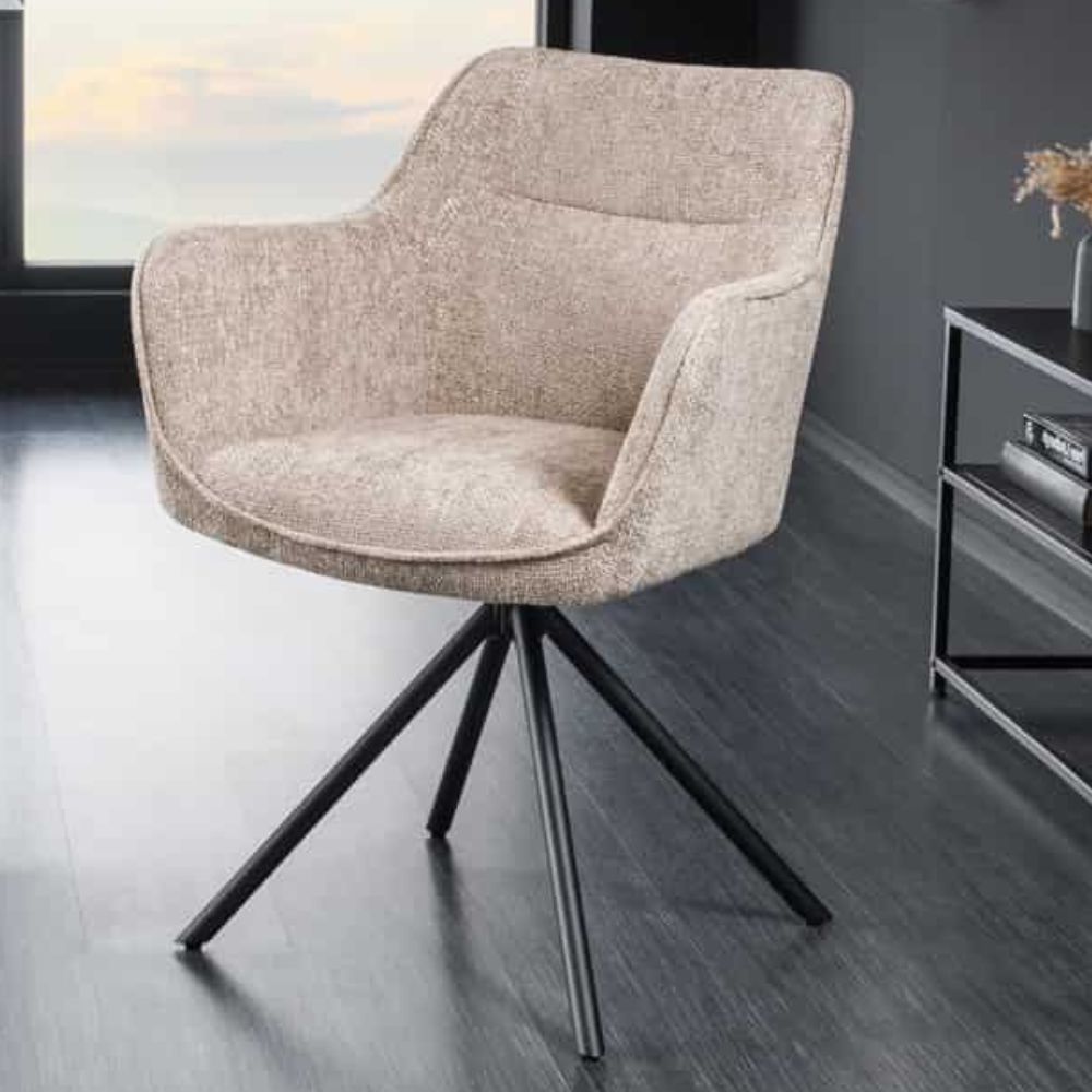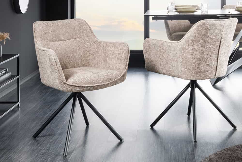Eleganter Design-Drehstuhl Florenz champagner beige Strukturstoff Metallgestell
